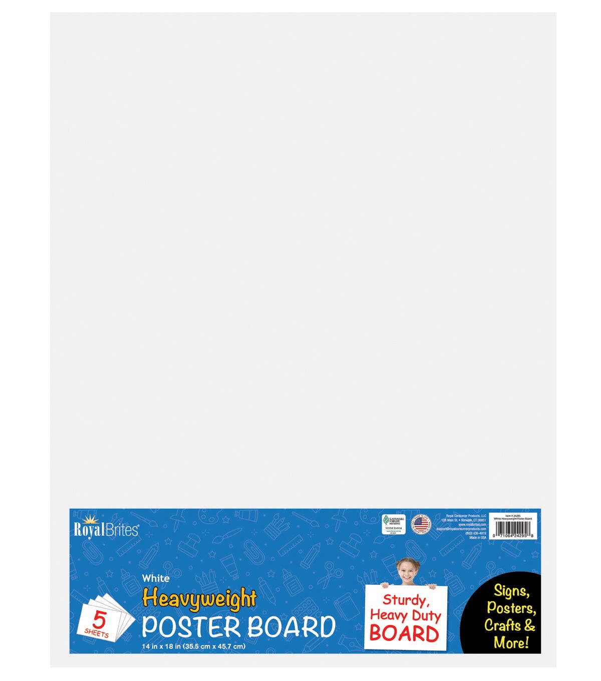 Royal Brites Premium Heavyweight White Poster Board, 14''x18'', 5 sheets per Pack, 10 Packs per Case