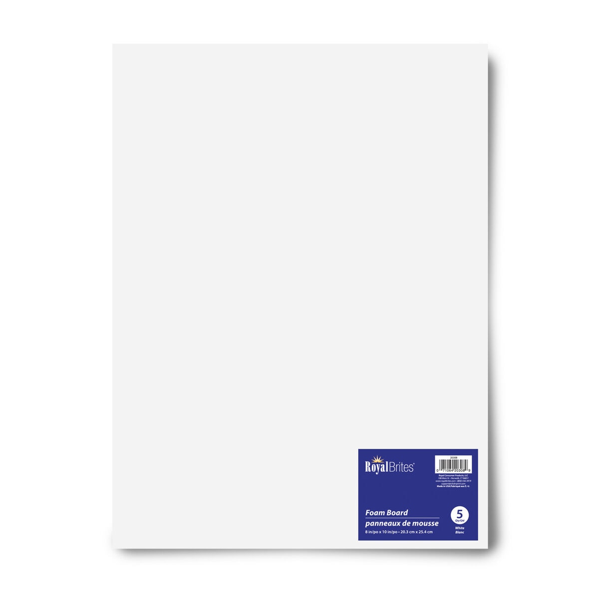 Royal Brites White Foam Board is lightweight but strong with rigid surface. Perfect for crafts, framing, mounting displays, home and school projects. Works with paints, markers and more. Each pack contains 5 boards of 8"x10" white foam board. Pair with our Royal Brites Poster Boards sold separately.