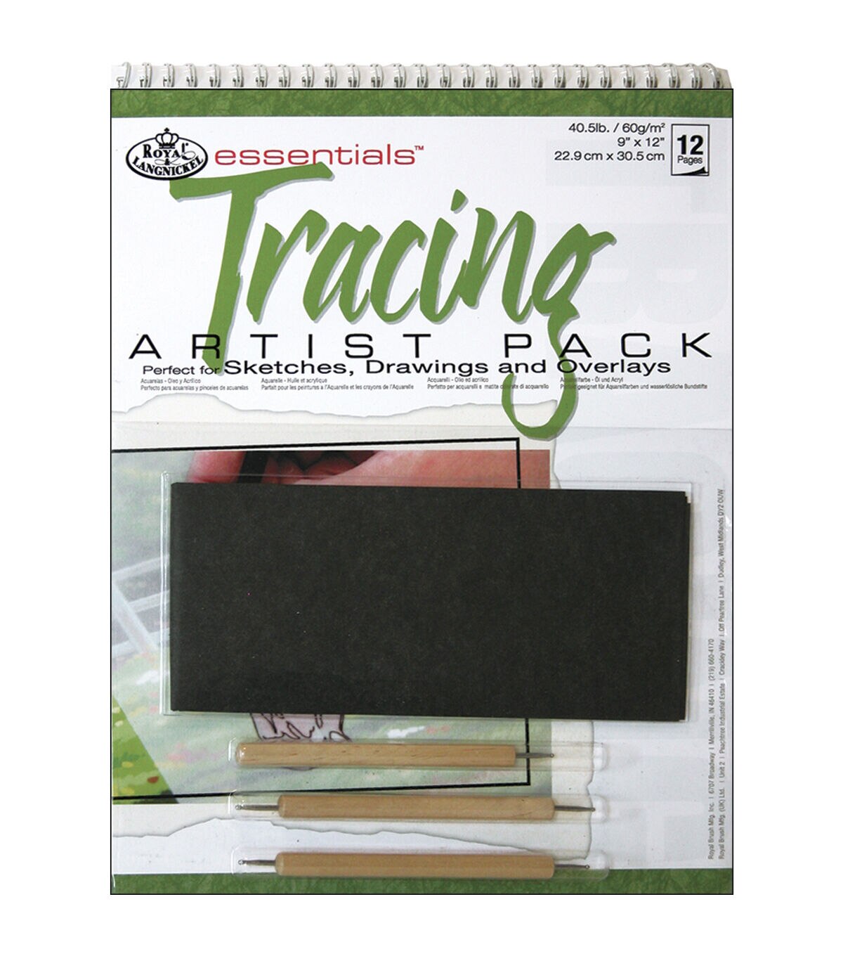These Artist Pack Kits contain all the necessary tools you need to indulge your inner artist. These kits are available in a variety of mediums; each with its own spiral-bound paper pad. This package contains one 12x9in twelve page pad of 41 lb. tracing paper; a large sheet of grey graphite paper and three wood handled stylus' (two duo tipped and one single tip). Contents conform to ASTM D4236.