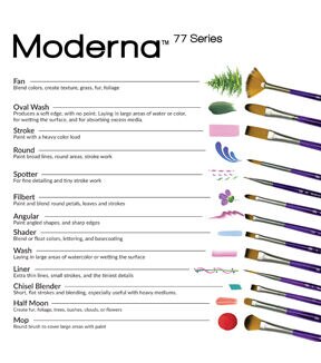 - QUALITY BRUSH - This quality brush series is comprised of premium quality multi-diameter synthetic gold taklon hair offering excellent spring and points. Moderna 77 Series bold design and durable construction make it the best mixed media brush on the market today.