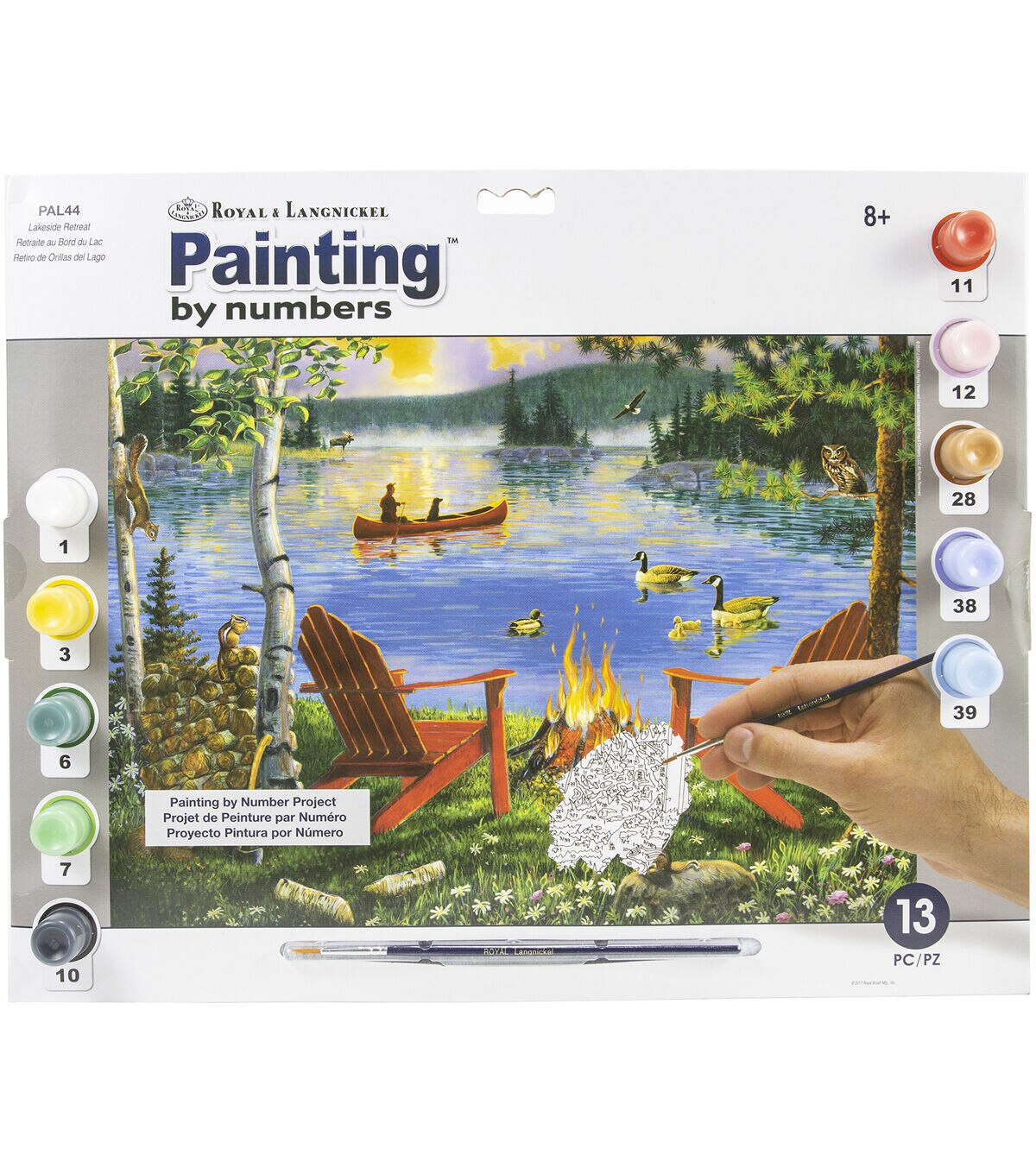 ROYAL BRUSH-Adult Large Paint By Number Kit. These designs offer more complex artwork giving you the challenge and outcome you are looking for. These kits contain one 15-3/8x11-1/4in pre-printed artist board, one pre-printed practice board, ten acrylic paints, brush and instructions. Available in a variety of themes. Conforms to ASTM D4236. Recommended for children ages 8 and up. WARNING: Choking Hazard-small parts. Not for children under 3 years. Imported.