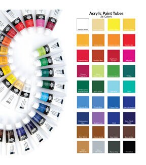 - RICH COLORS - 36 piece, Assorted Colors. Acrylic Paint is smooth, vividly pigmented colors with a thick consistency for an effortless application that is permanent when dry.