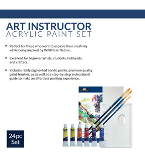 New to acrylic painting? Royal & Langnickel's Art Instructor Acrylic set takes the guess work out of learning this new skill. This 24pc set includes high quality art supplies, projects and a step by step instructional guide. Bonus online video instruction at royalbrush.com/art instructor.
