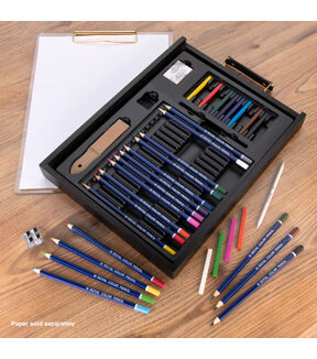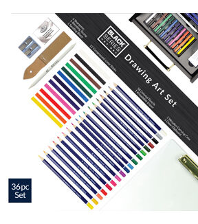 - COMPLETE 36PC SET INCLUDES - 18 Color Pencils, 12 Color Stick, 1 Clear Artist Clip Board, 1 Sharpener, 1 Kneadable Eraser, 1 Sandpaper Block, 1 Paper Blending Stump, and 1 Black Wooden Case