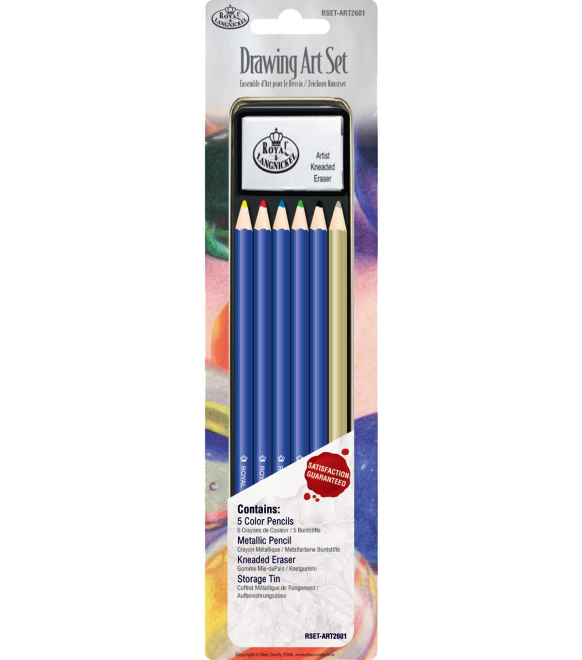 This drawing set includes five colored pencils, a metallic pencil for fun, eye-catching accents and a kneaded eraser.
