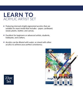 Learn To™ Acrylic Painting Sets are perfect for beginners looking to explore a new medium. All the drawing supplies and accessories needed to get started are included! The instructional guide booklet walks you through all the basics in detail.