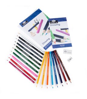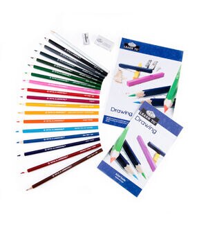 - Set includes: 18 color pencils, 12 sheets of drawing paper, 1 kneadable eraser, 1 sharpener, 1 instructional guide booklet