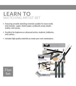 Royal & Langnickel's Learn To line offers beginners in-depth instruction paired with high quality tools to experiment with. This Learn To Sketching set introduces beginners to the world of sketching.
