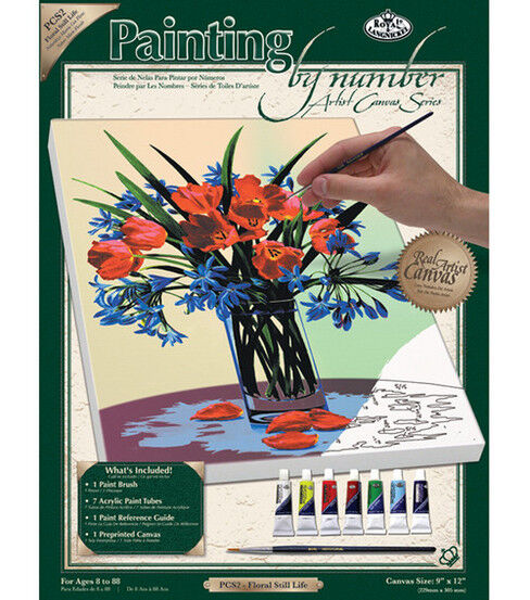 Enhance your painting skills and create your own piece of art with ease, using the Royal & Lagnickel Artist Canvas Series Painting by Number Kit 9'' x 12''. Apply beautiful strokes on a printed real artist canvas as you follow the simple instructions to match the coordinating numbers and colors that are available. This paint by number kit comes with a paint brush, seven acrylic paint tubes, one pre-printed artist canvas and one print reference guide. The paint kit's finished size measures 9 x 12 inches. Available in a variety of fun and attractive themes.