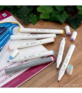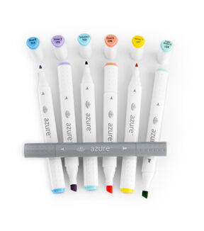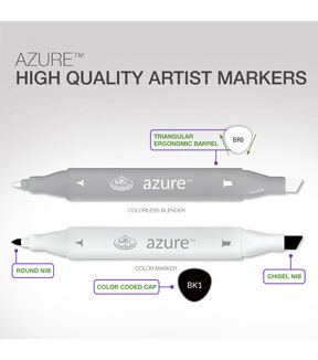 Royal & Langnickel's dual-tipped Azure Markers give artists ultimate control and versatility with the ability to create a range of line widths - all with one hard-working marker. Azure vibrant ink has a smooth lay down and is easy to blend. The alcohol based ink dries acid-free which means it will not break down paper fibers. These markers are permanent and are free of harmful chemicals and overwhelming odors.