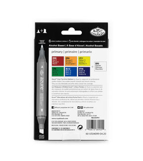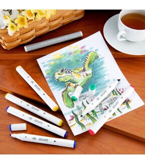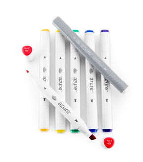Royal & Langnickel's dual-tipped Azure Markers give artists ultimate control and versatility with the ability to create a range of line widths - all with one hard-working marker. Azure vibrant ink has a smooth lay down and is easy to blend. The alcohol based ink dries acid-free which means it will not break down paper fibers. These markers are permanent and are free of harmful chemicals and overwhelming odors.