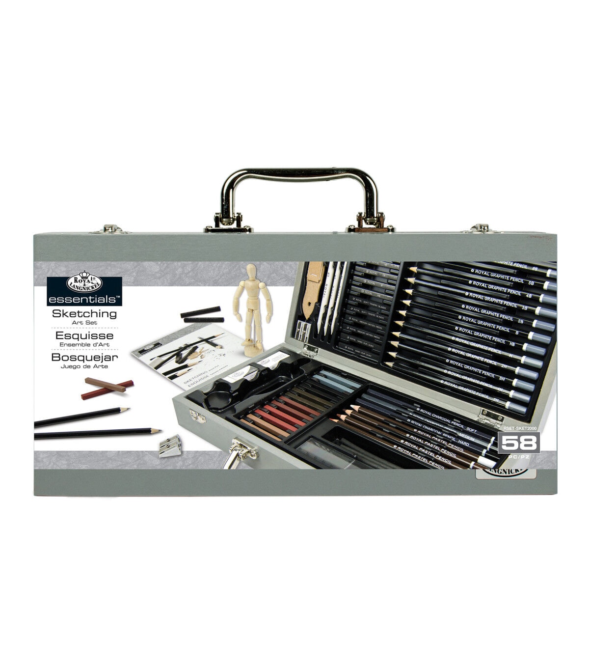 This art set includes all the high quality art supplies needed to perfect sketching skills. This set contains 12 graphite pencils, 12 compressed color sticks, six each of sketching sticks and charcoal sticks, four each of pastel pencils and sticks of vine charcoal, three each of charcoal pencils and blending stumps, one each of artist mannequin, sanding block, six-inch ruler, kneadable eraser, eraser, sharpener, and a sketching artist pad (5" x 7").
