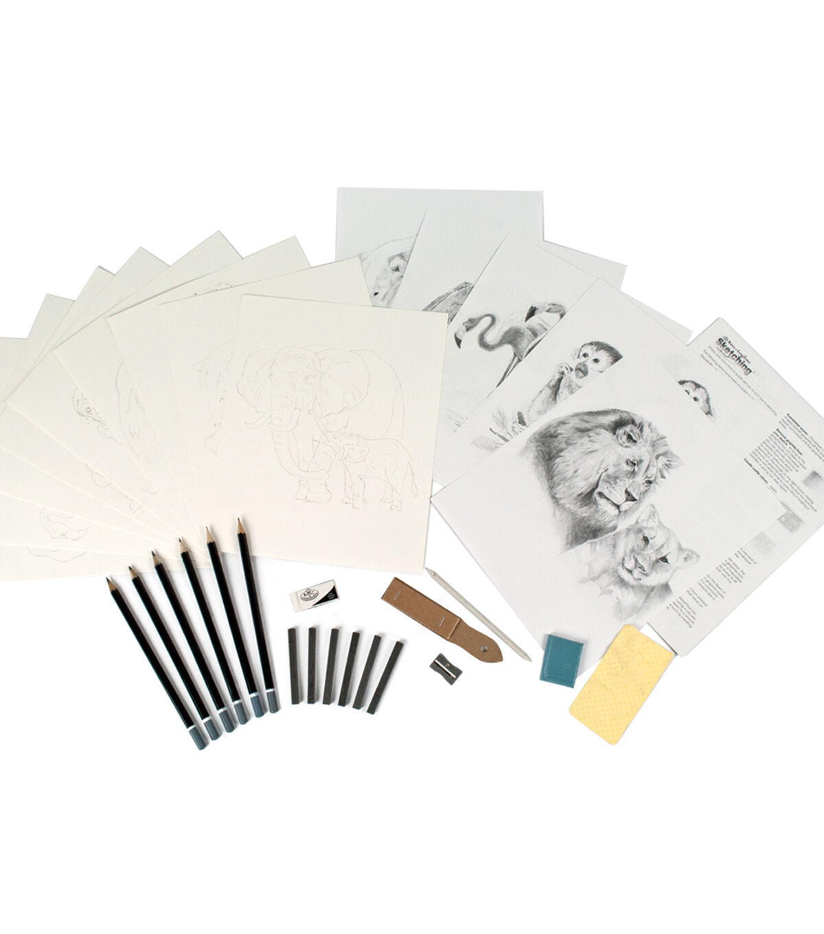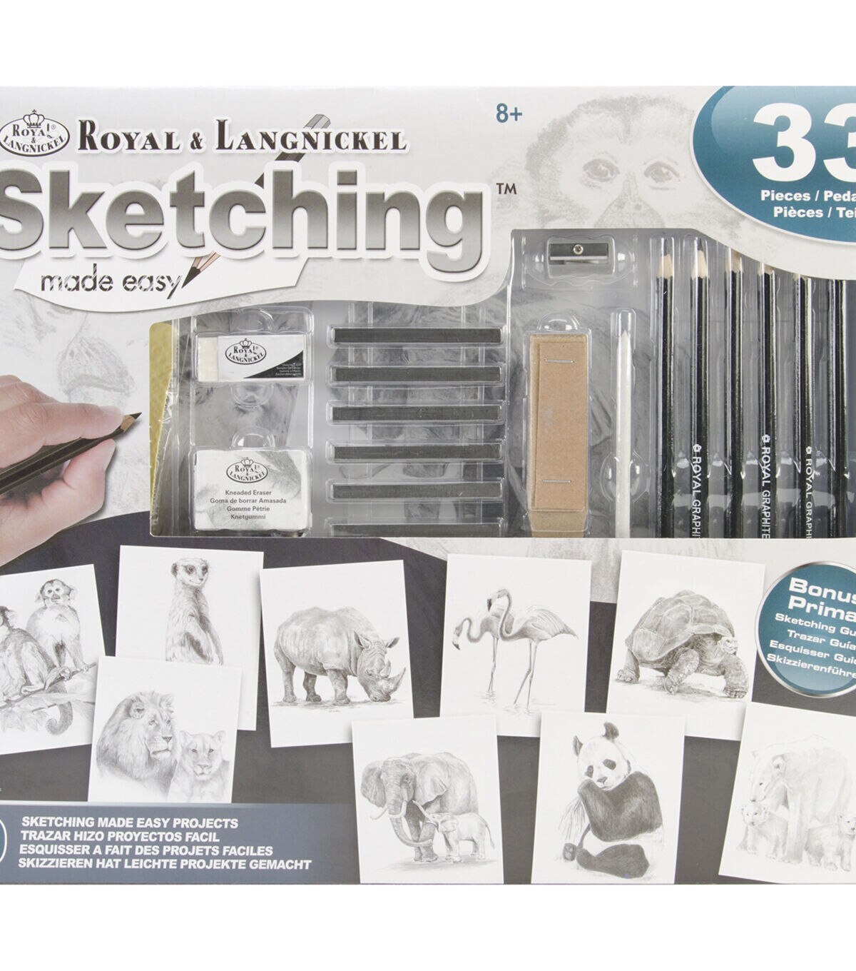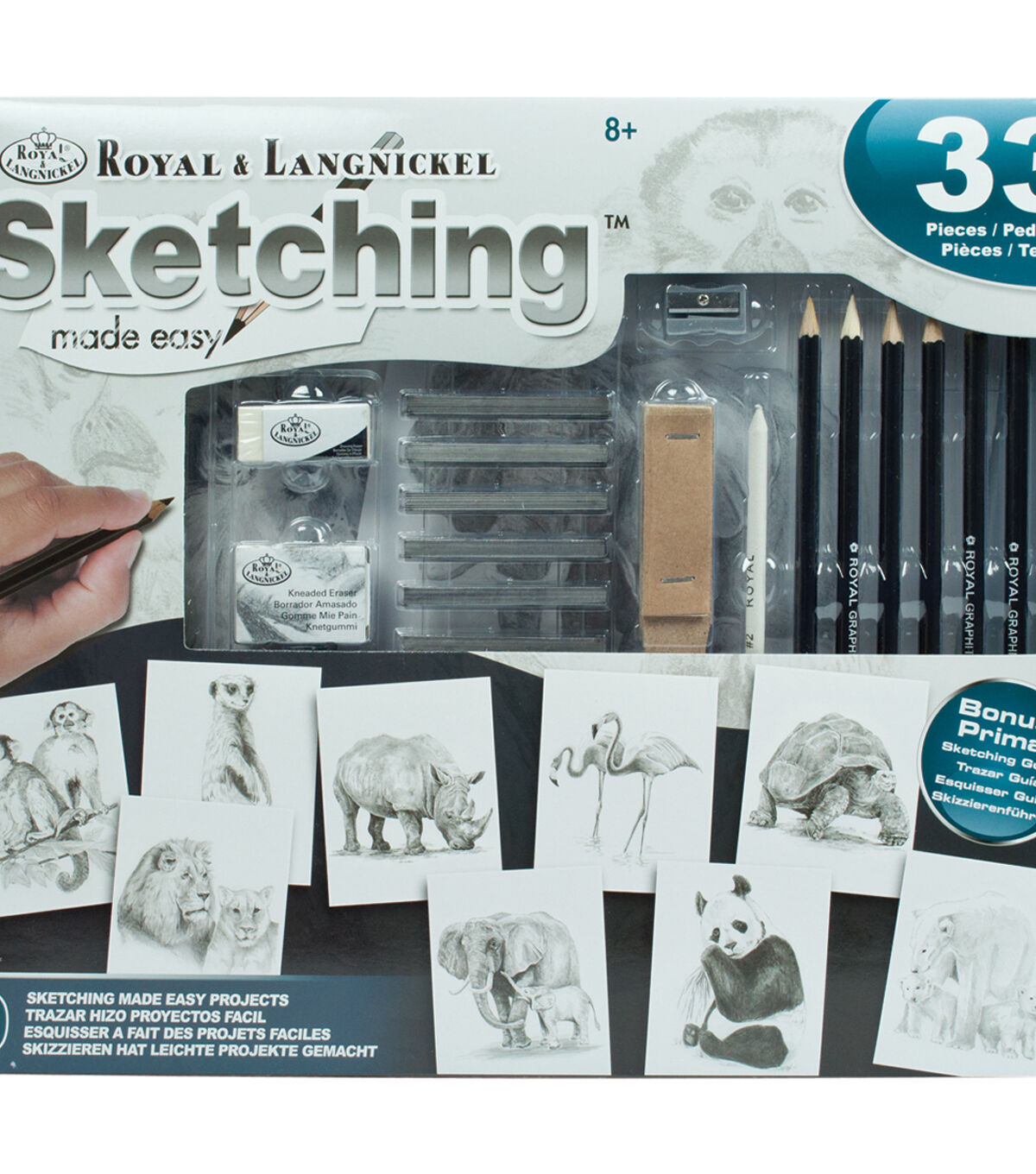 Sketch a variety of animal images, using the art supplies included in this Royal & Langnickel Sketching Made Easy Activity Set. This art activity kit includes nine projects, along with sketching sticks, graphite pencils, blending stump, erasers, guide, and more. It’s perfect for kids aged 8 years and above. Conforms to ASTM D 4236.