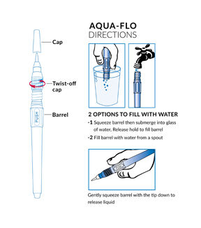 - AQUA-FLO PEN - Fill Aqua-Flo pen with water for precise control and detail. HIGH TRANSPARENCY - Watercolor paint can be used for a variety of wet media project/crafts. Use a sponge or brush to wet the paper. Watercolors are transparent which makes layering colors easy!