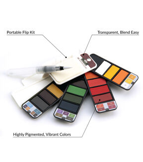 - COMPACT - Sleek, compact design that fits easily in a backpack, desk drawer or art carrying case, travel-friendly Watercolor art set. INSPIRE CREATIVITY - Our Watercolor Travel FlipKit is perfect for beginners, students, or professionals. Teens and Adults.