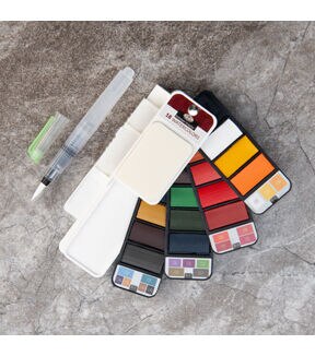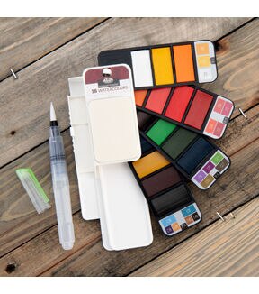 Royal & Langnickel Essentials 19 pc Watercolor Travel FlipKit is essential for any artist! Paint watercolor art on-the-go! Sleek, compact design. Fits easily in your backpack, drawer or carrying case! 18 different watercolors and one Aqua-Flo pen. Create endless combinations of color! This convenient, travel-friendly FlipKit is ideal for any level artist! Beginner to advanced.