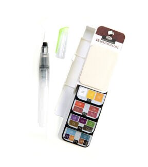 - CONTENTS - 19 pc travel-friendly Watercolor Art Set - 18 Watercolors, 1 Aqua-Flo Pen, easy to create endless variations of colors and mixing combinations!