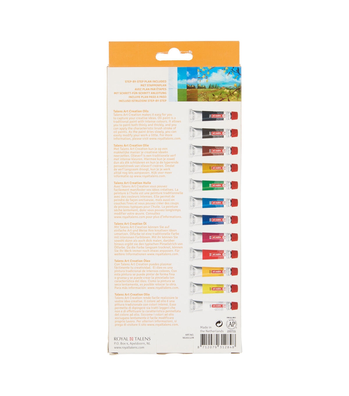 Talens Art Creation oil colour is a versatile type of paint that you can use both thin and very pasty. The paint is made of pigments and vegetable oil and offers intense colours. These oil colours are suitable for all oil painting techniques, such as wet on wet, layered painting and glazing.