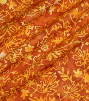 Rust Orange Leaves Batik Cotton Fabric