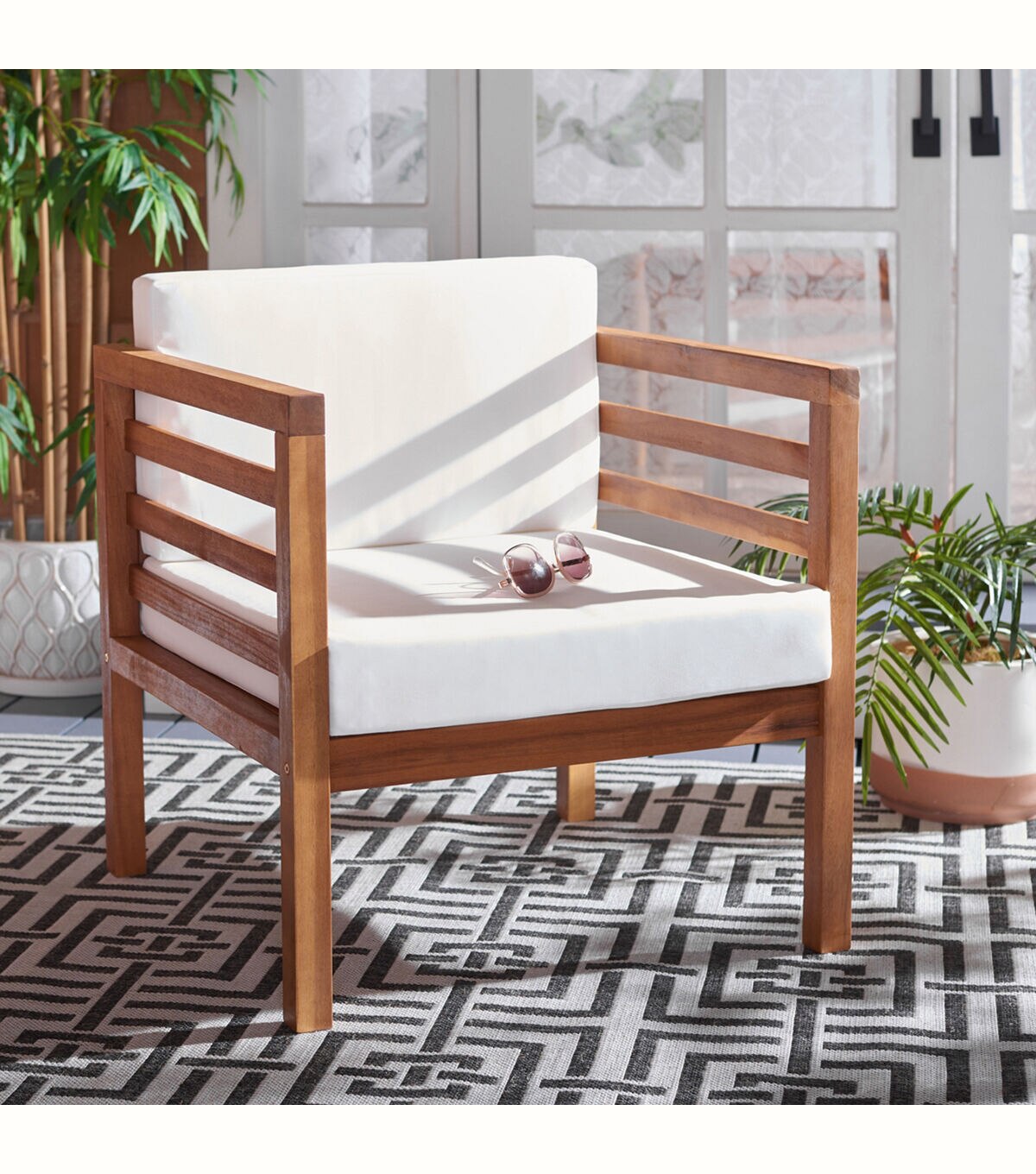 Safavieh 26" x 26" Kinnell Beige & Natural Outdoor Armchair