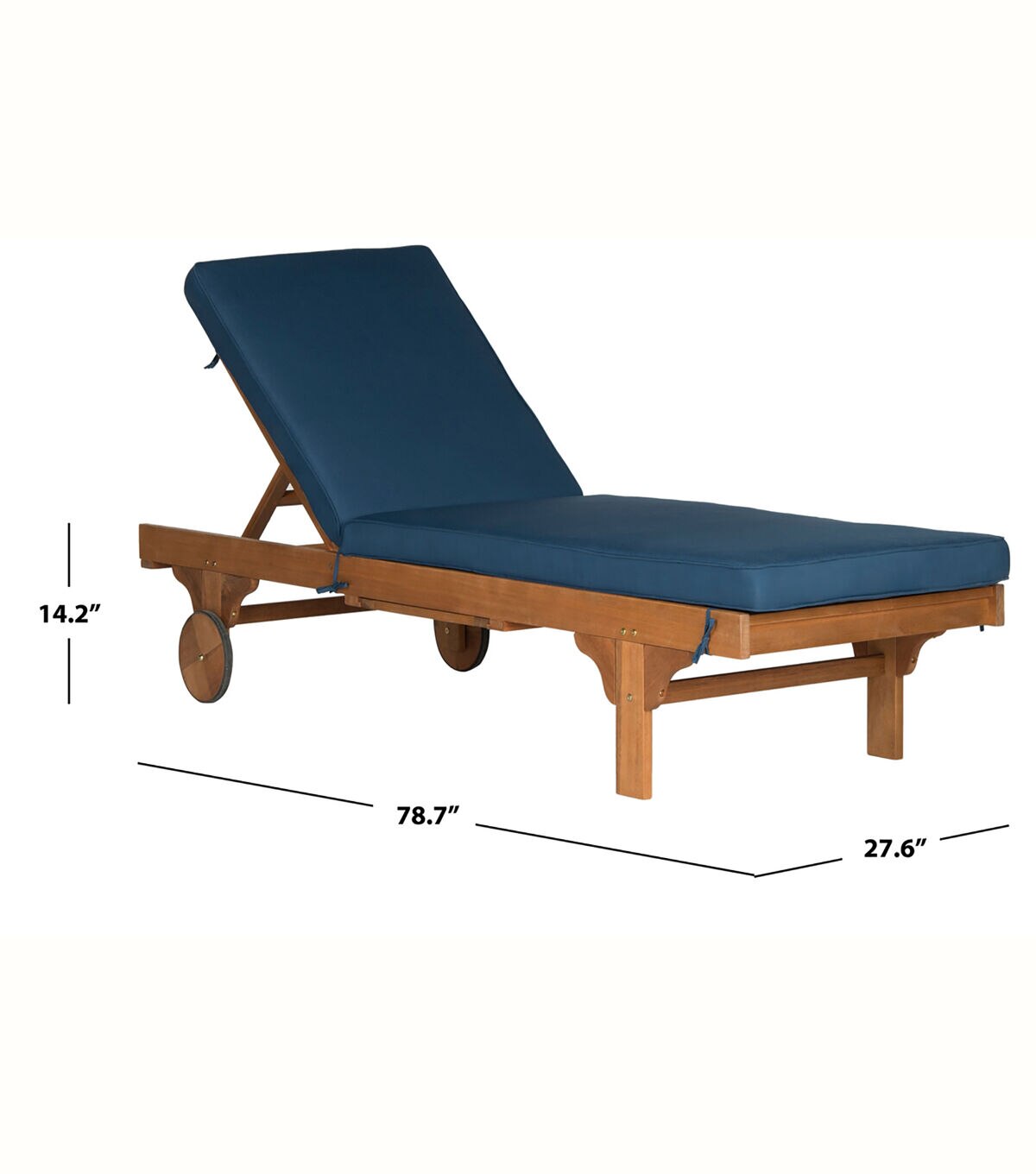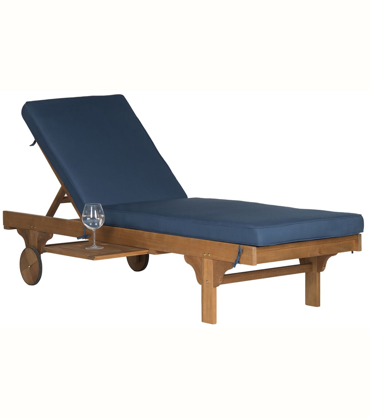 Safavieh 28" x 79" Navy Newport Outdoor Chaise Lounge With Side Table