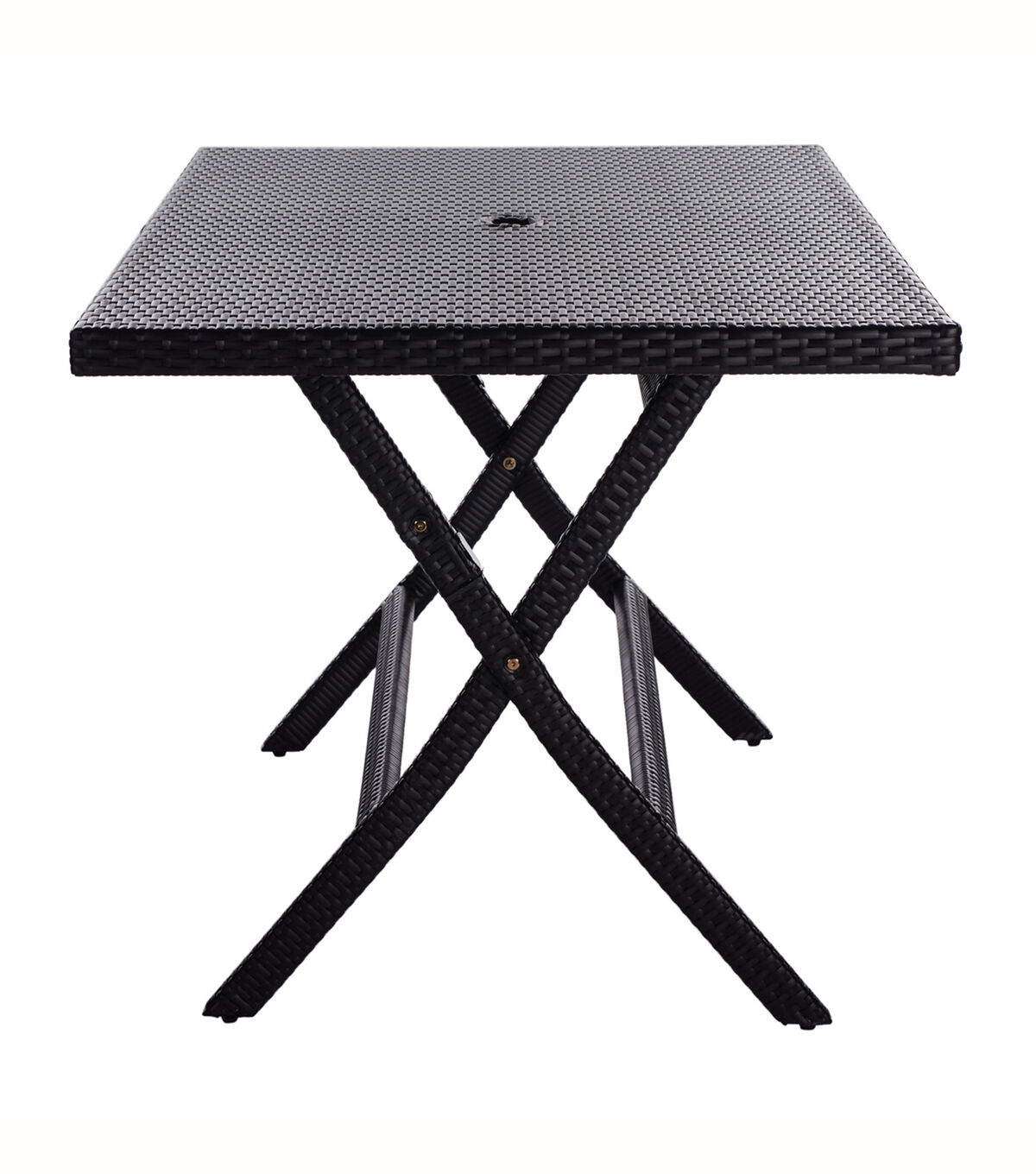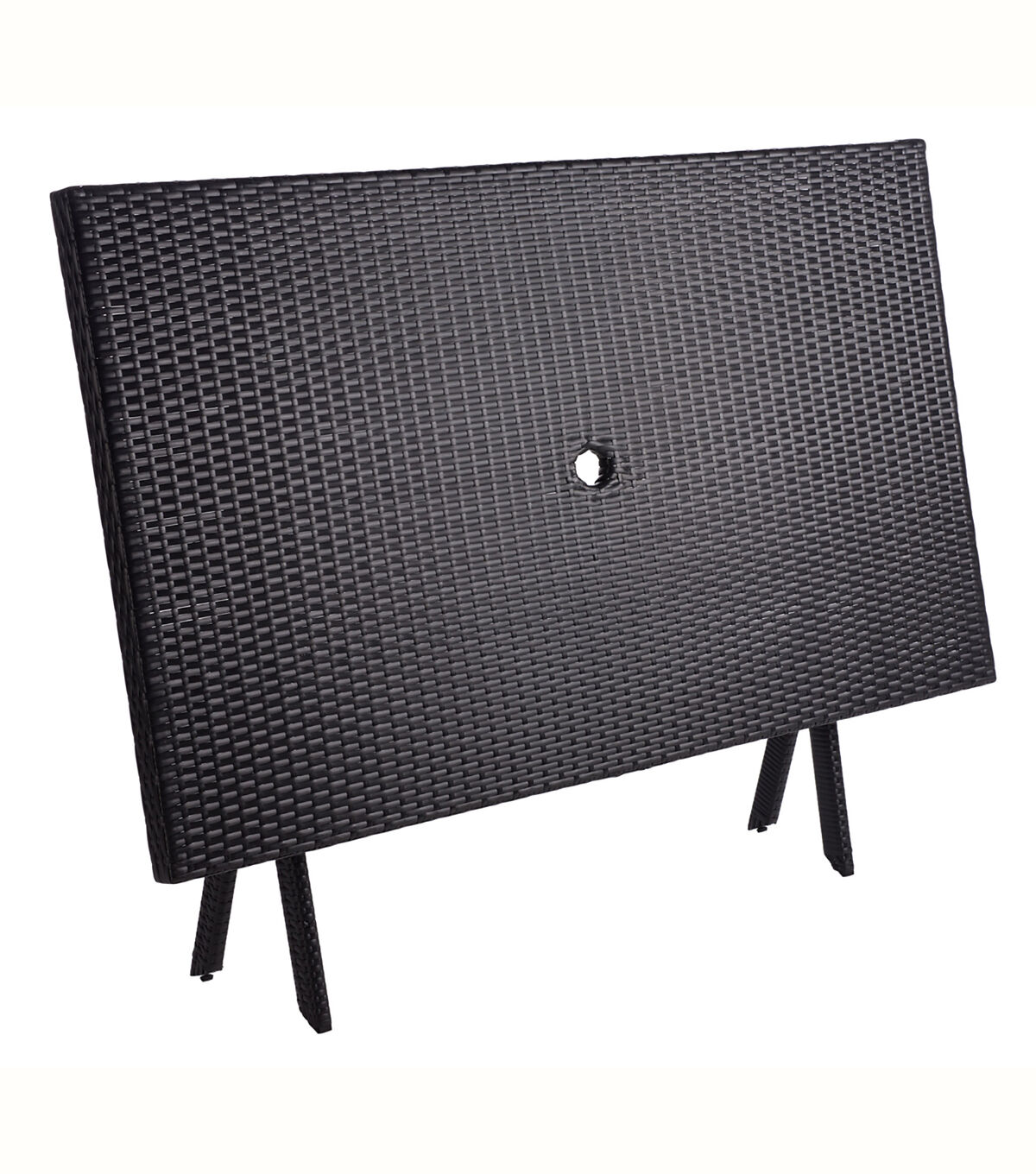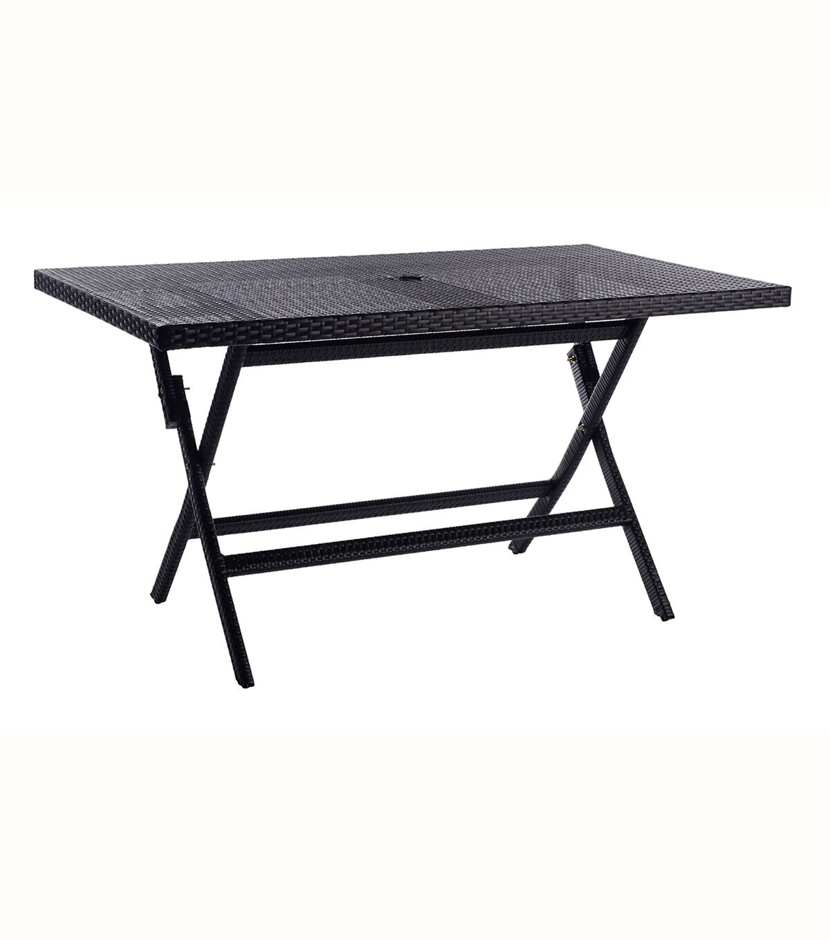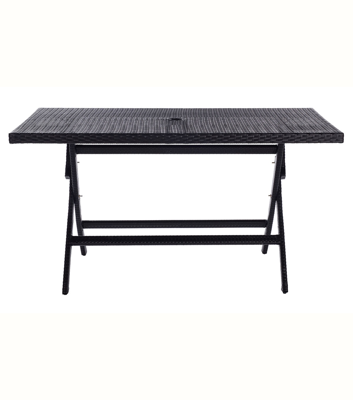 The Akita Table perfectly blends the functionality of a folding table with the high style needed for chic outdoor dining. Styled in forever fashionable black, Akita’s texture rich surface features a cut out in the center for umbrellas, allowing you stay protected from the sun’s harsh rays.