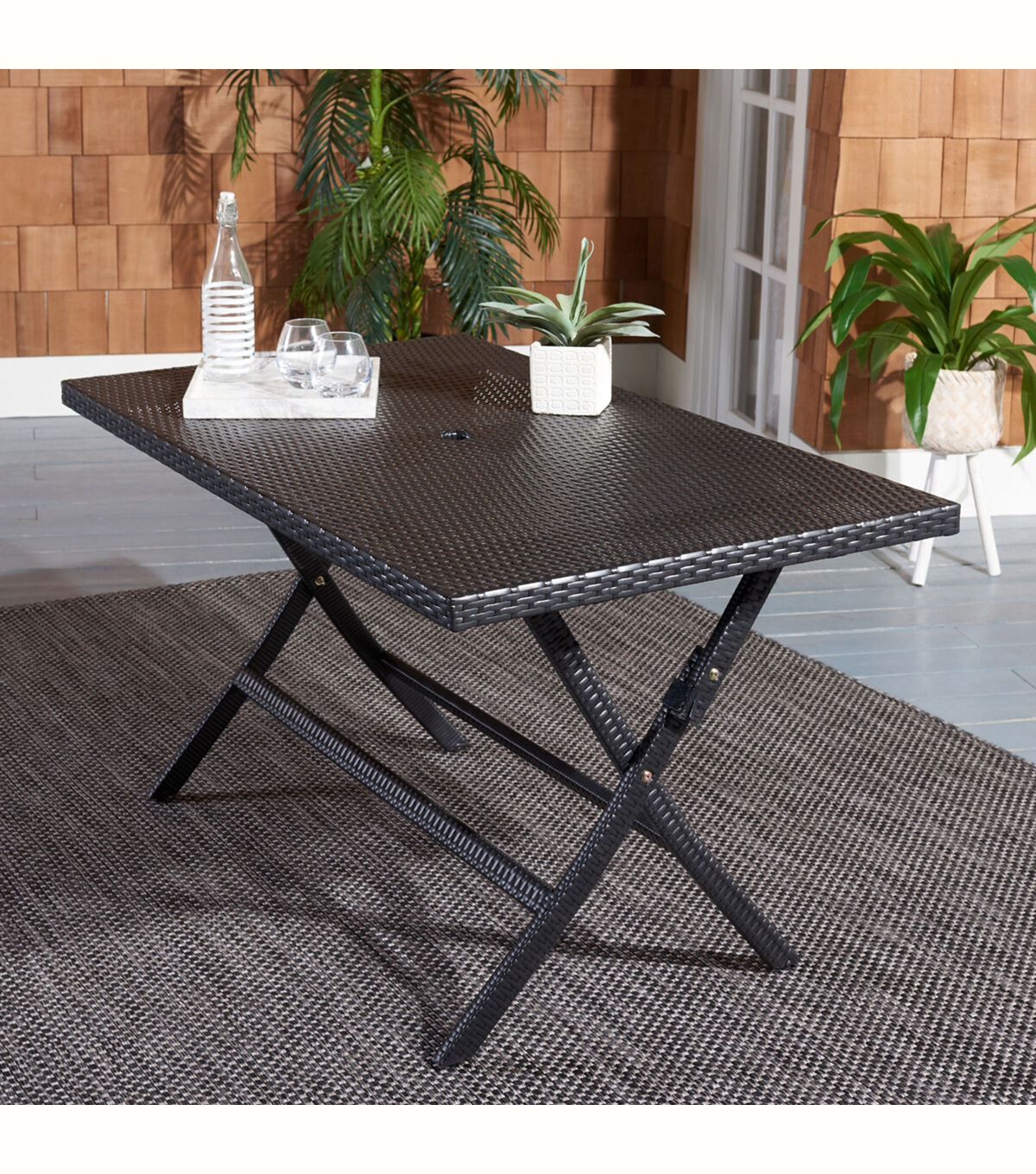 Safavieh 54" x 31" Black Akita Outdoor Folding Table