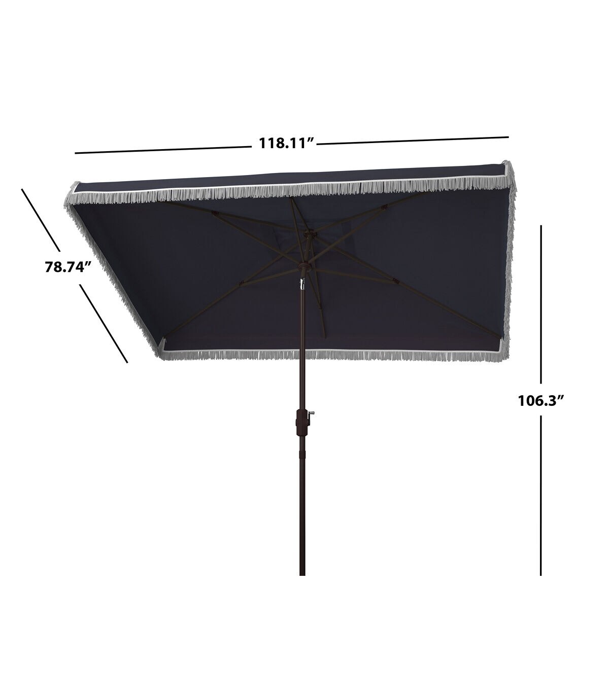 Safavieh 6.5' x 10' Navy Milan Fringe Rectangle Crank Patio Umbrella