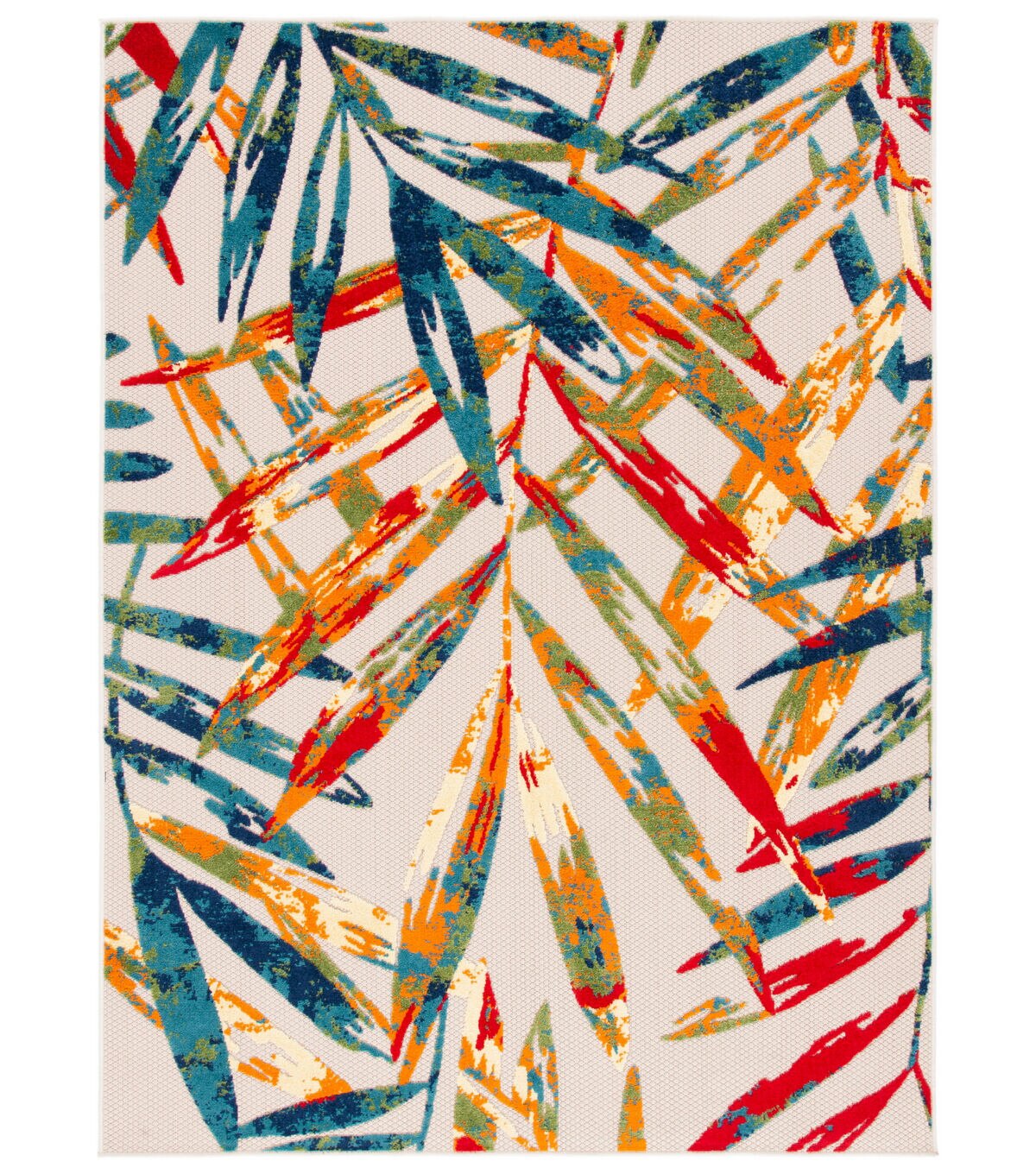 Cabana Indoor/Outdoor Rugs offer a selection of elaborate floor coverings for any busy area of the home, inside or out. Playful florals, lush vines, and fanciful geometric motifs brim with "staycation" vibes on any deck, porch, or patio. Cabana patio rugs are made using durable synthetic yarns for resistance to weather, wear, mold, mildew, and fading from the sun.
