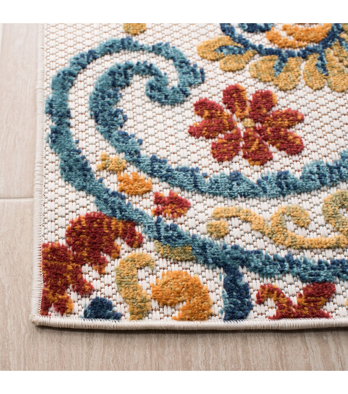 Cabana Indoor/Outdoor Rugs offer a selection of elaborate floor coverings for any busy area of the home, inside or out. Playful florals, lush vines, and fanciful geometric motifs brim with "staycation" vibes on any deck, porch, or patio. Cabana patio rugs are made using durable synthetic yarns for resistance to weather, wear, mold, mildew, and fading from the sun.