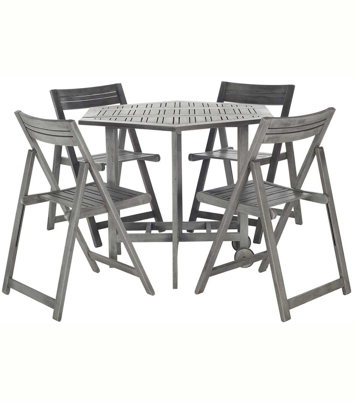 Safavieh Kerman Gray Wash Outdoor Table With 4pc Foldable Chair Set