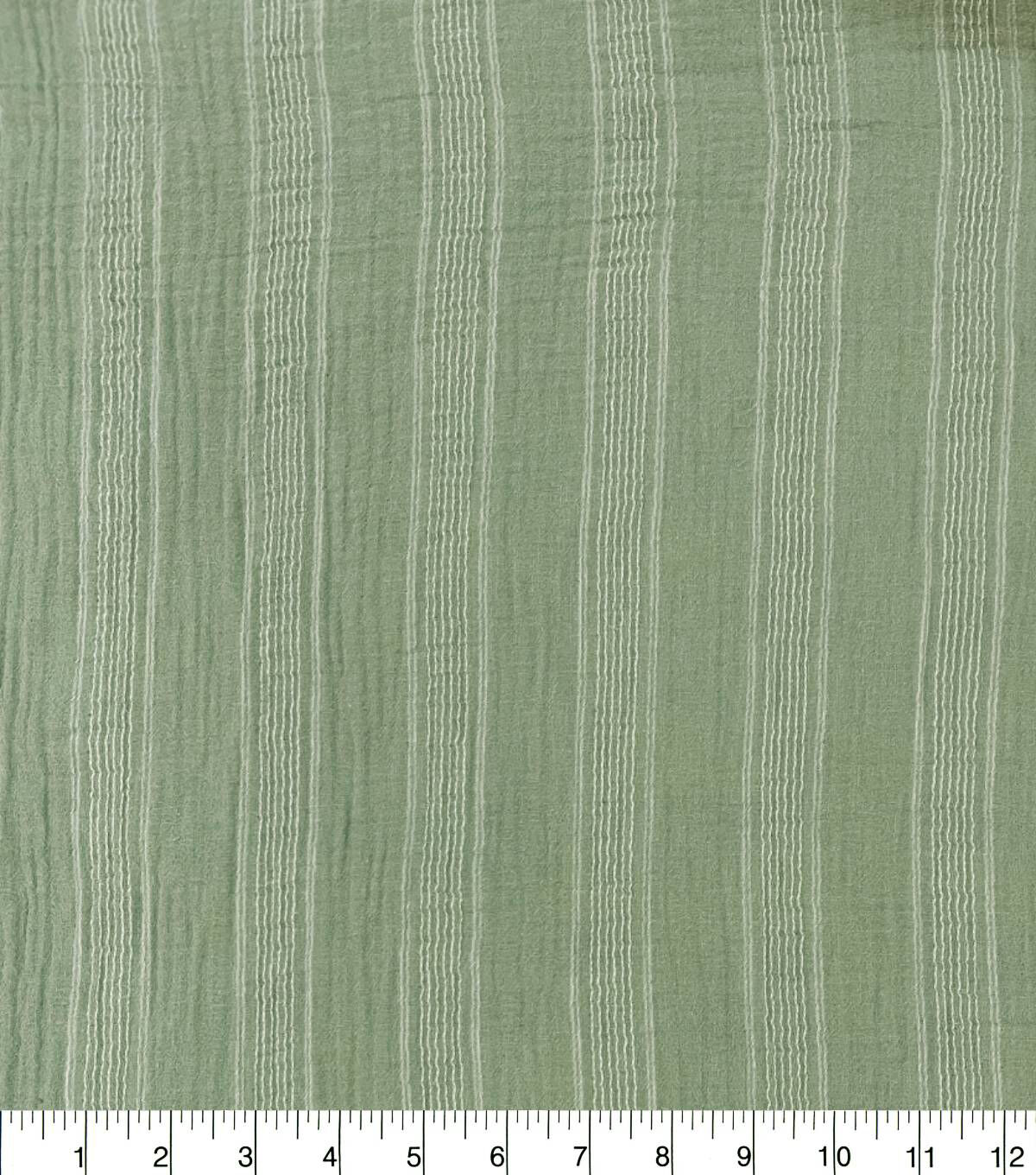 Sage Multi Stripe Cotton Bubble Gauze Fabric