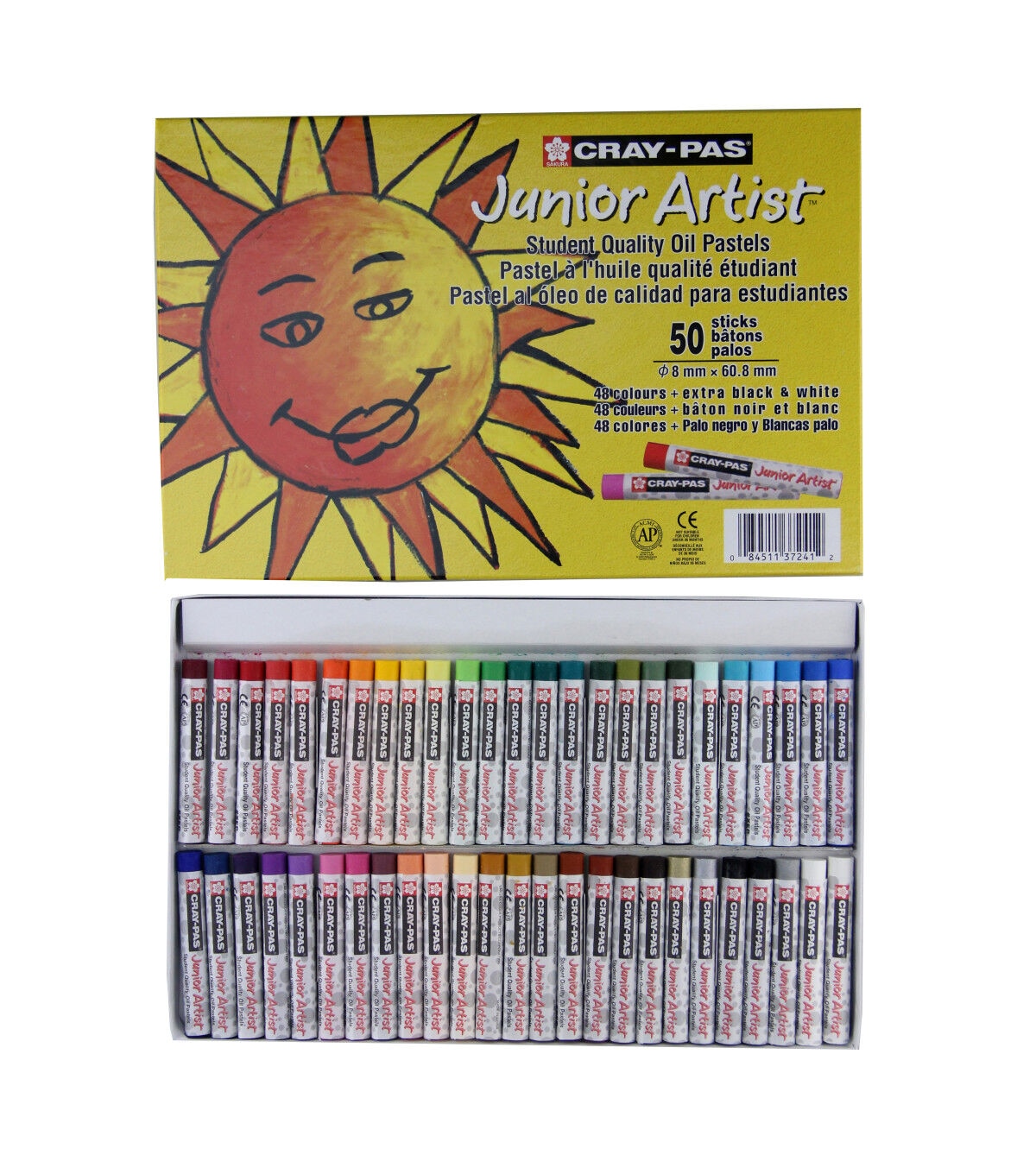 Young artists blossom with creamy, smooth color that they can smear, blend, dot, over-lap and mix. Intensely colored and long-lasting, Cray-Pas Junior Artist pastels are used in classrooms worldwide for introducing young artists to the creative process. These oil pastels achieve oil painting effects without the mess of actual oil paint - many teachers prefer them over ordinary wax crayons because they provide a wide range of effects and techniques for skill development. Great for helping students learn how to hold a stick to achieve different strokes – either as a pencil, clenched in a fist or on its side. Scratch and stencil art are also possible with these versatile pastels!