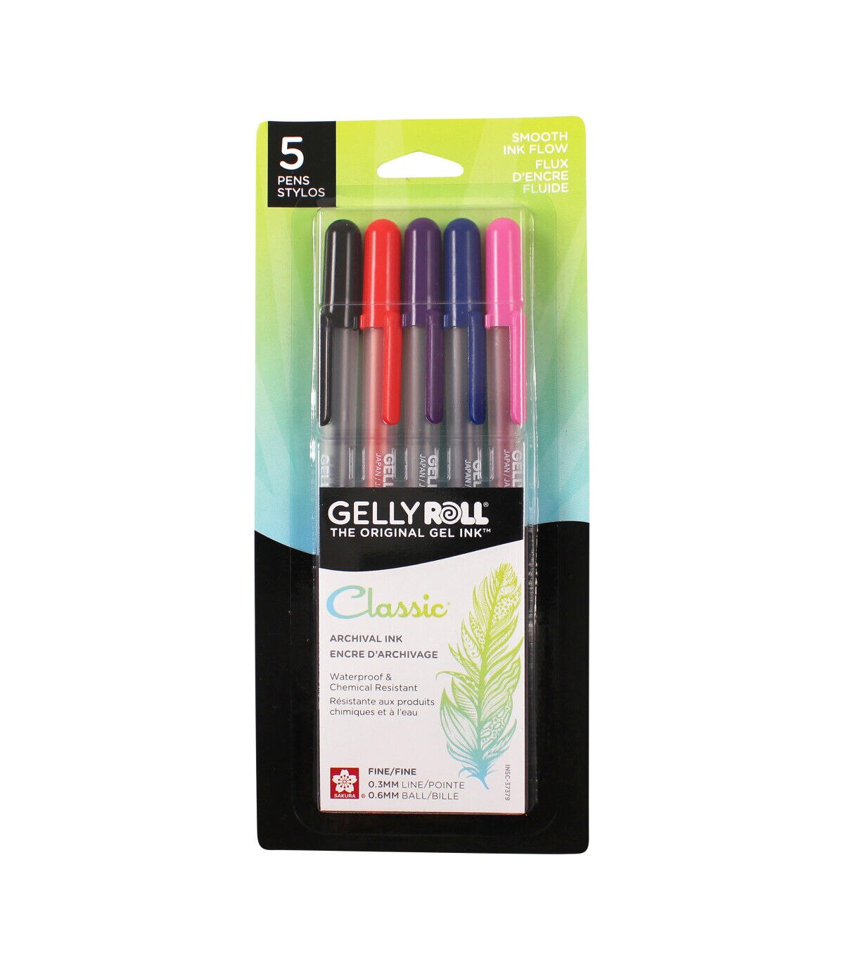 Contains (5) 0.3mm roller ball-fine line pens, including red, royal blue, purple, pink & black
