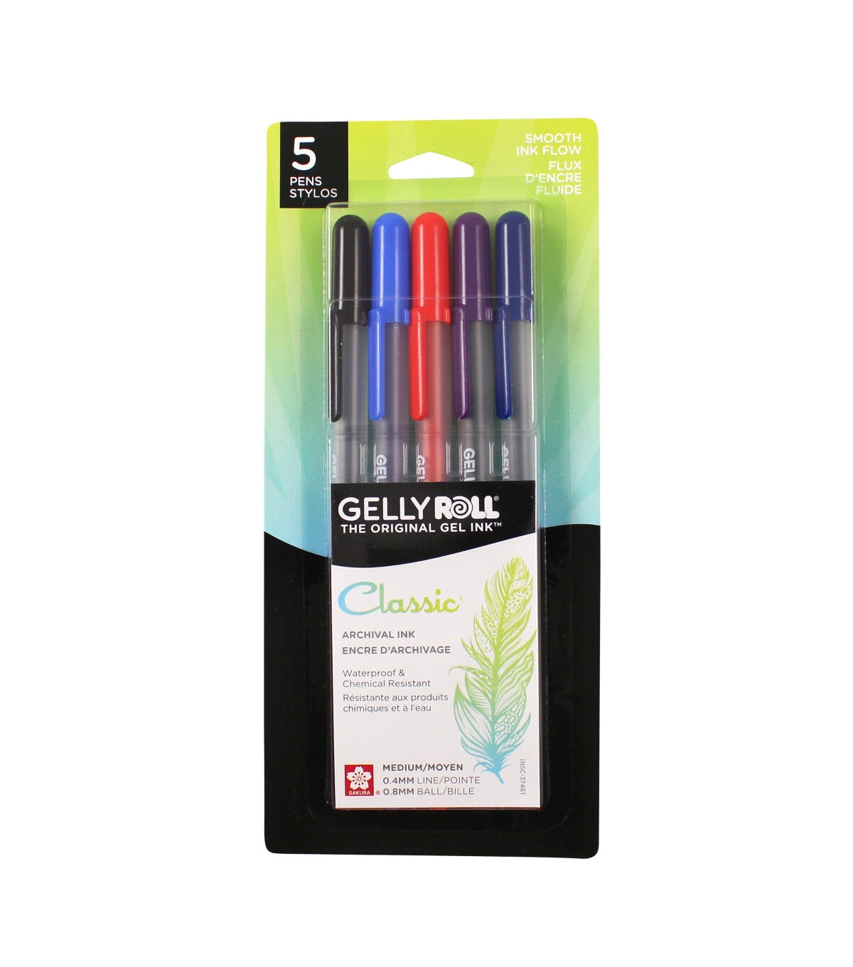 Contains (5) 0.4mm roller ball-fine line pens, including red, royal blue, purple, pink & black