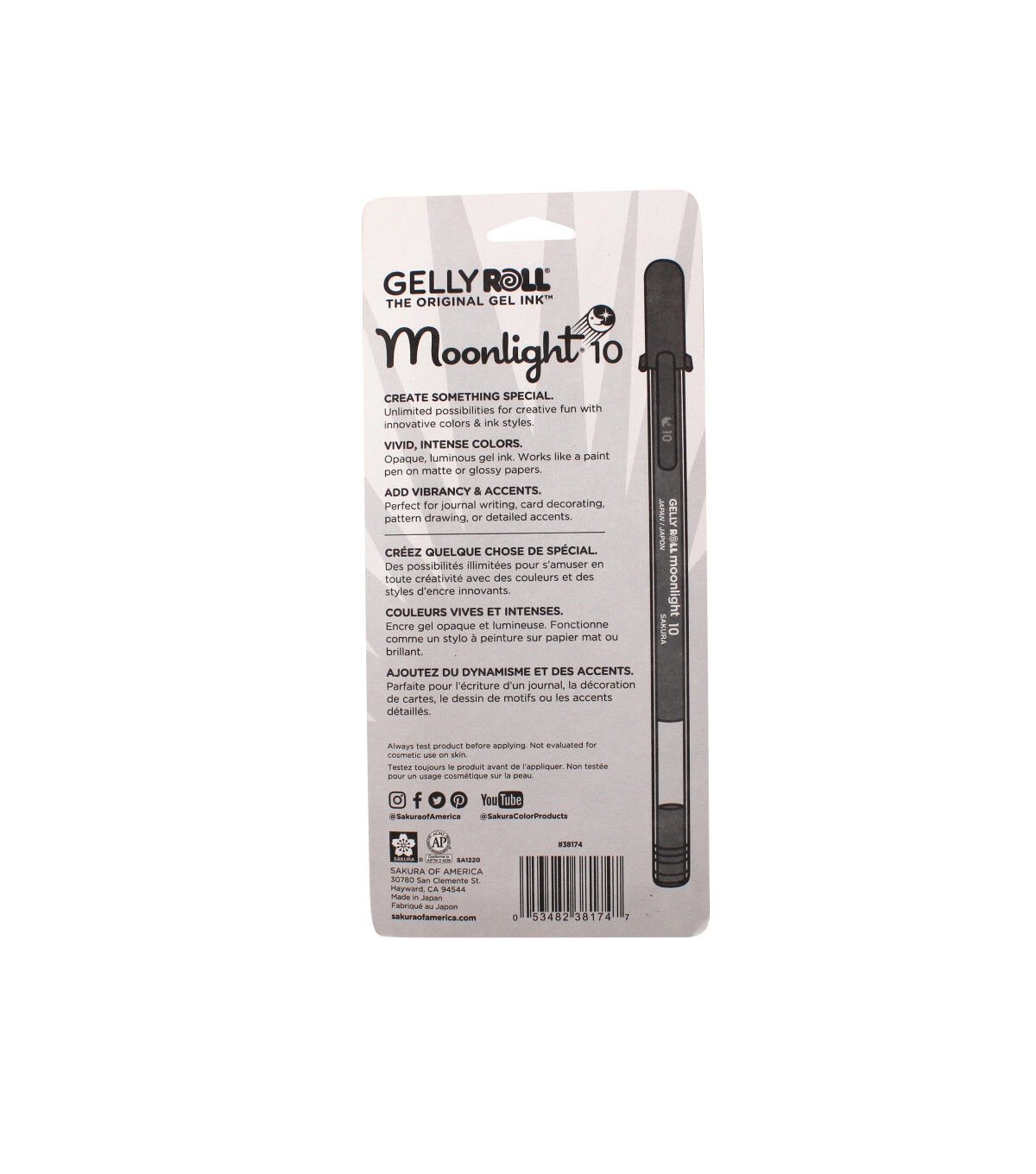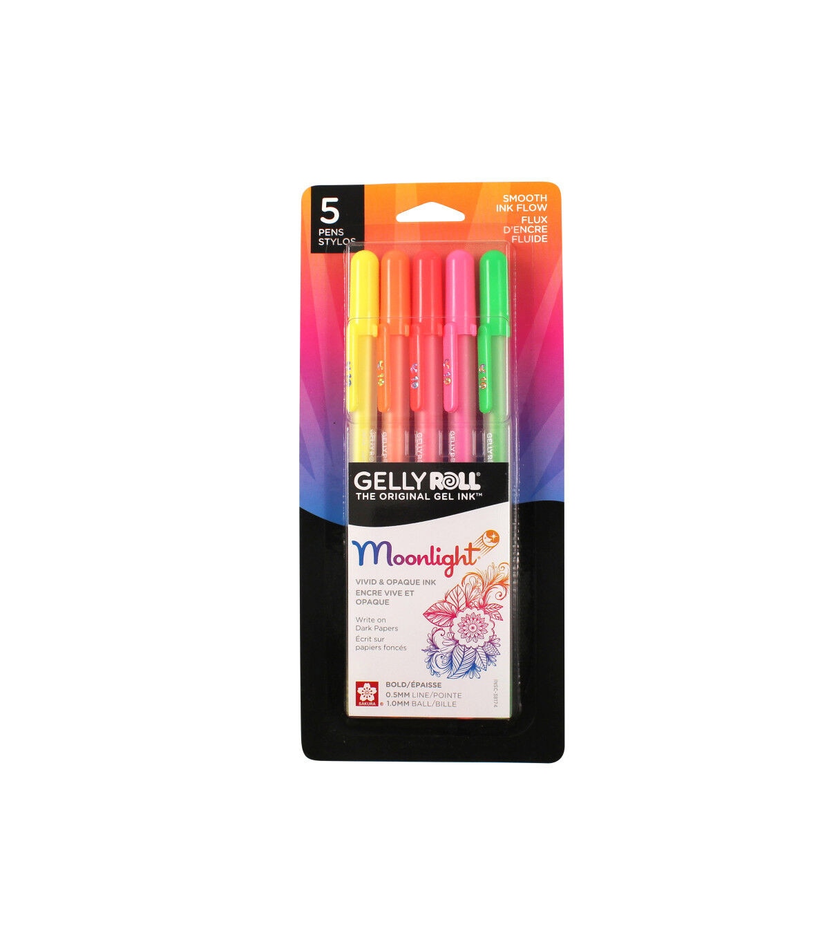 Gelly Roll Moonlight Pens shed light onto art works, school projects, memos and more. The ultra vivid, opaque inks are luminous on light or dark paper and on most porous surfaces. These fluorescent colors glow under a black light for added effect!