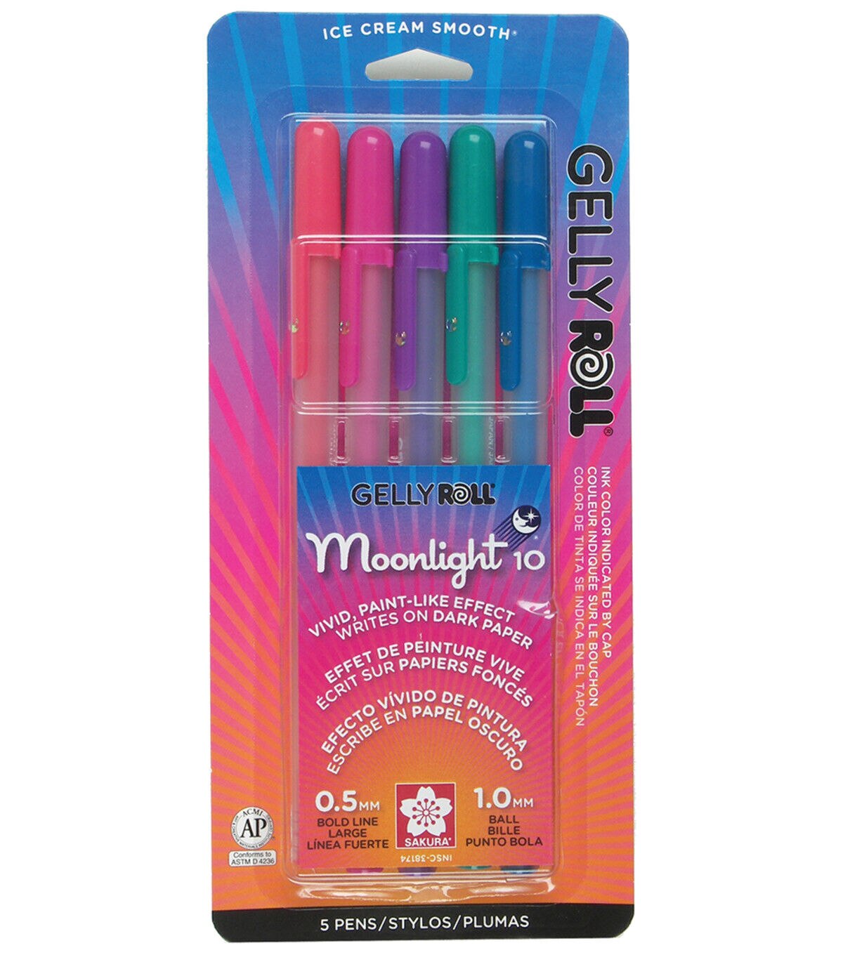 Gelly Roll Moonlight Pens shed light onto art works, school projects, memos and more. The ultra vivid, opaque inks are luminous on light or dark paper and on most porous surfaces. These fluorescent colors glow under a black light for added effect!