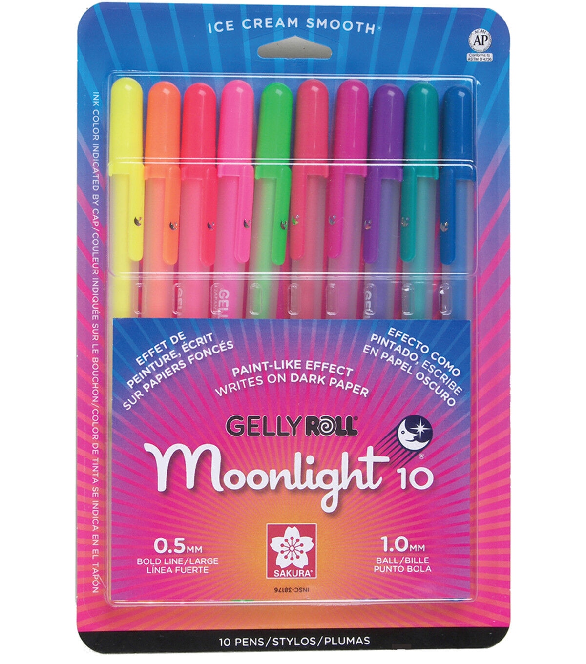 This set features ten luminous colors of ice cream smooth gel ink that even glows under black light! This ink is permanent, waterproof & works like a paint pen on all colored papers, report covers, vellum, & photographs.