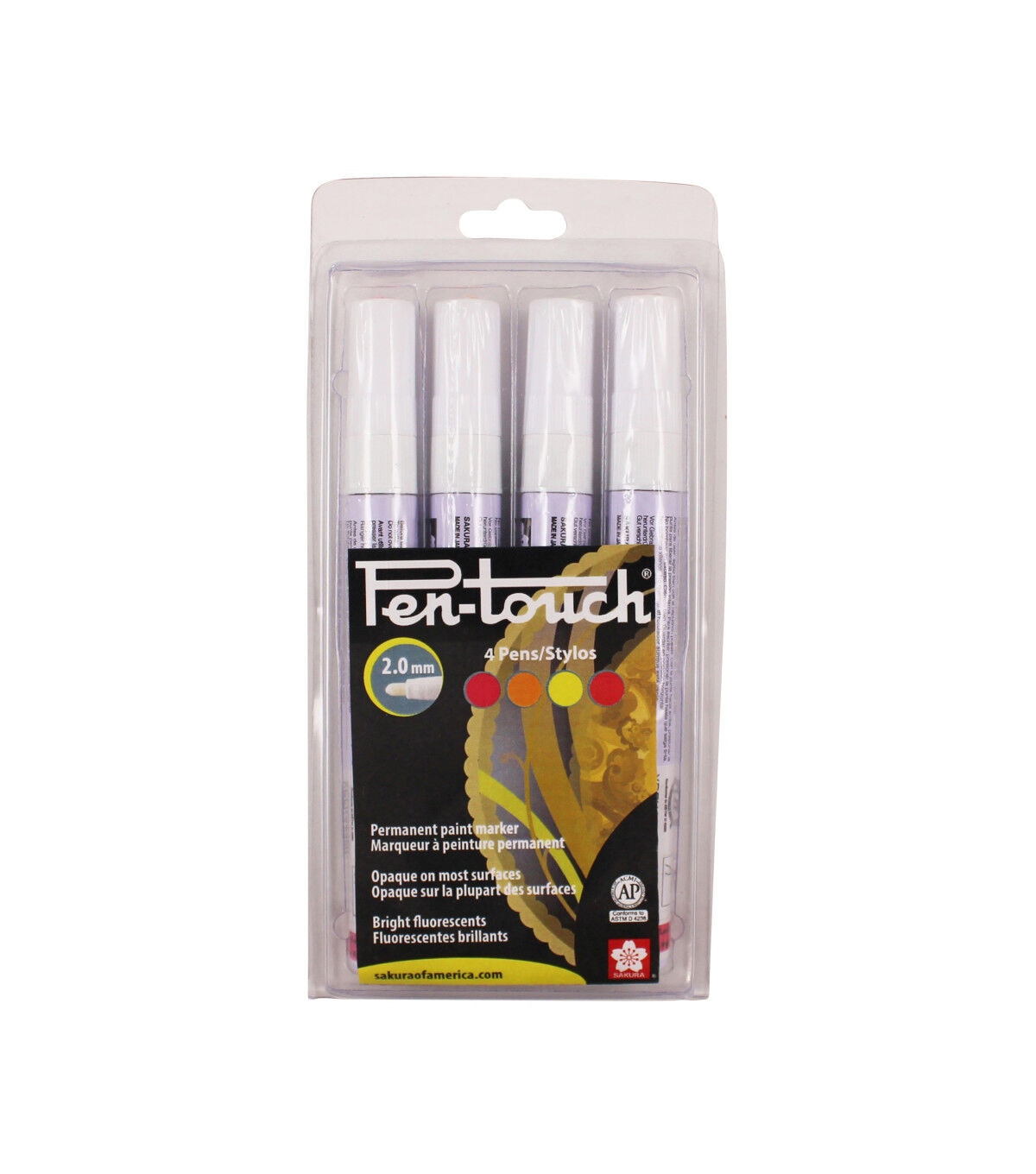 These paint markers feature archival quality ink that is chemically stable, xylene-free, and fade-resistant. The rich ink flows directly to the tip after a quick shake, and adheres to most surfaces including glass, wood, porcelain, plastic, paper and metal. The 4-Marker Sets include fluorescent yellow, fluorescent orange, fluorescent red and fluorescent pink.