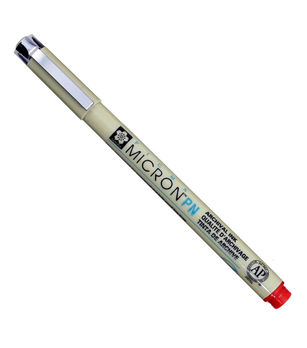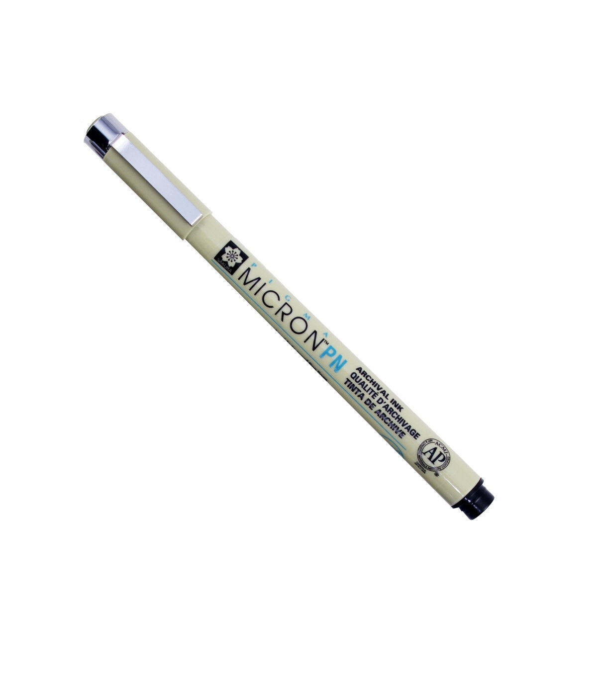This pen offers the same quality Pigma Ink performance as the regular Pigma Micron pens with a plastic nib suitable for everyday, multi-purpose writing. The durable plastic nib (PN) provides skip-free writing, and a fine or medium line width (.4mm to .5mm) can be achieved depending on applied pressure. Pigma ink is waterproof, chemical and fade resistant, bleed free, quick drying and pH neutral.