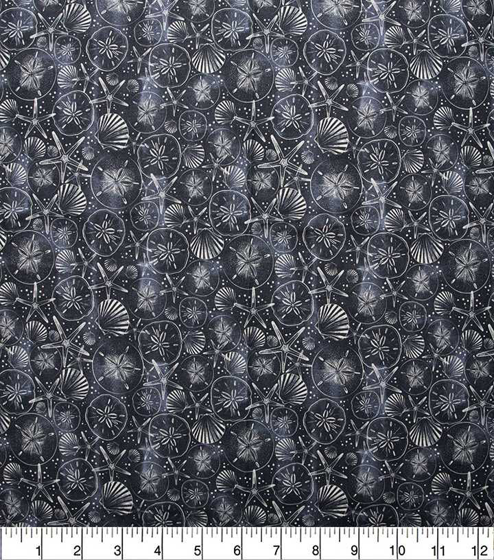 • Sandollars And Shells Navy Novelty Cotton Fabric