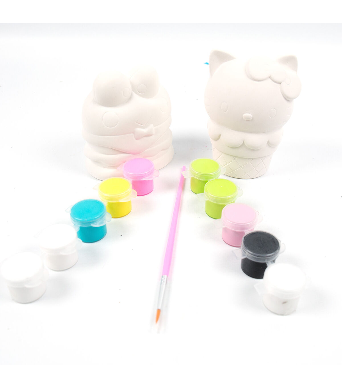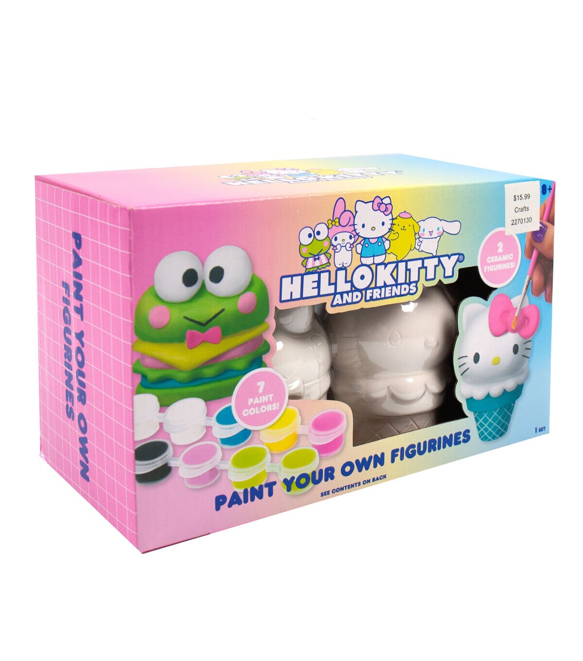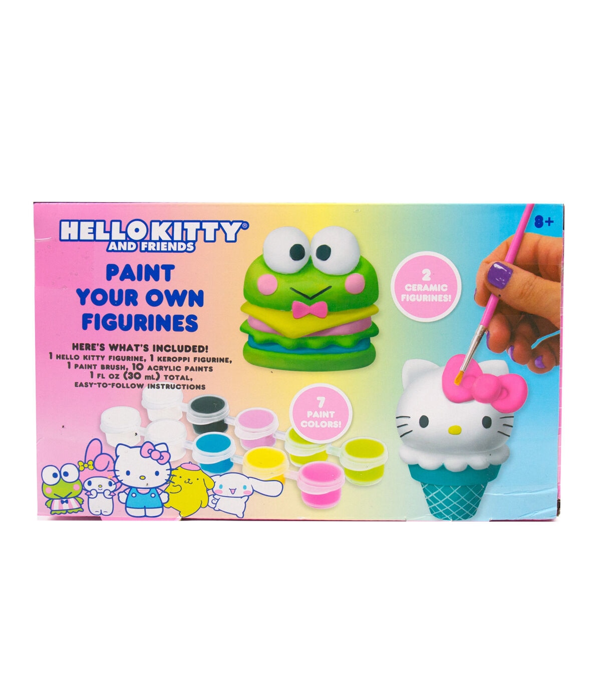 - Kit Includes: 2 Ceramic Figurines (Hello Kitty, Keroppi, 3 in. x 2 in. x 4 in.), 2 Acrylic Paint Strips, 1 Paintbrush, Easy-to-Follow Instructions
