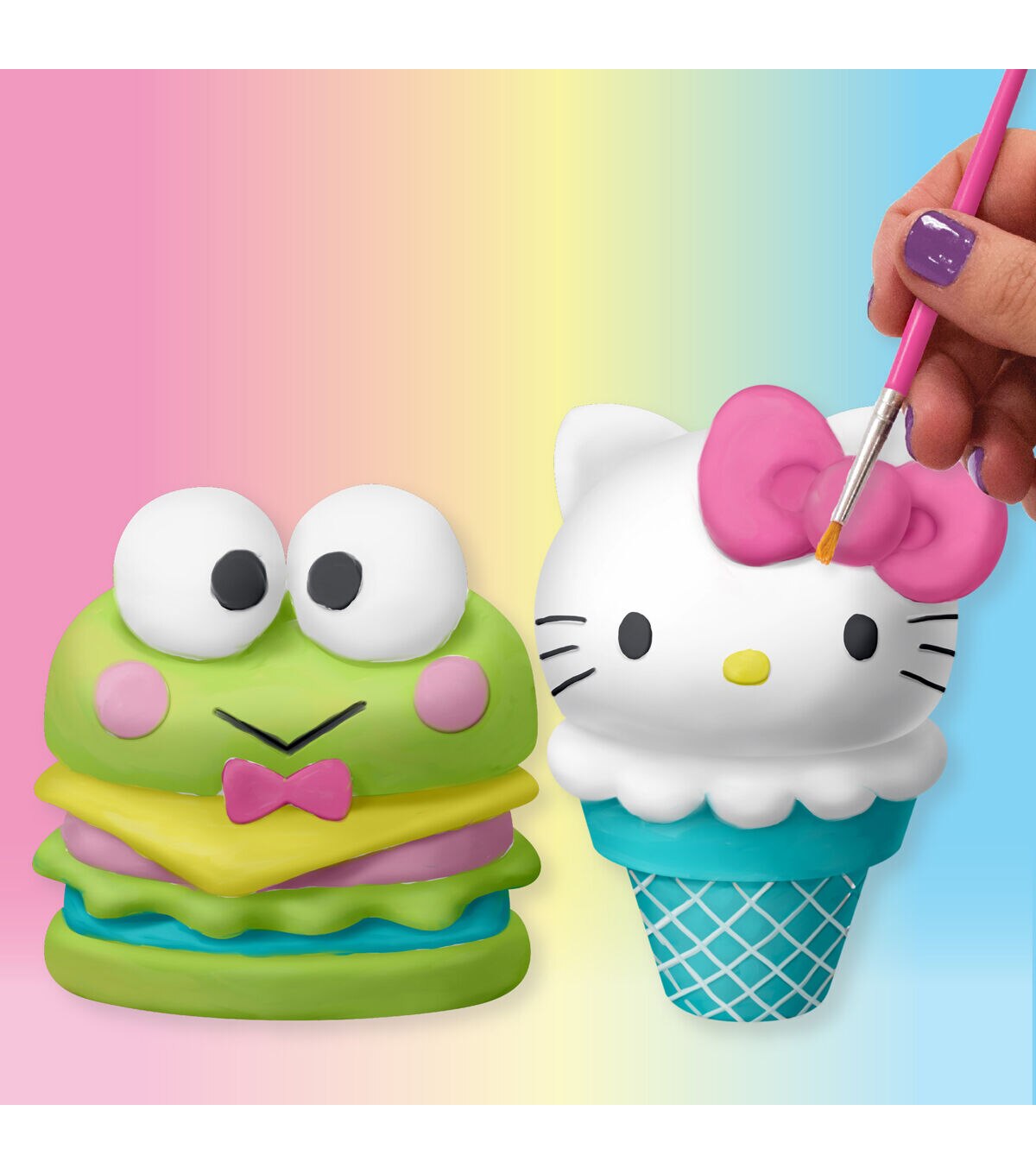 - Paint Hello Kitty and Keroppi, then display them on a shelf, gift them to a friend, or take them on fun adventures! The figurines are whimsical caricatures of some of your favorite treats: a hamburger Keroppi and a kittycone Hello Kitty!