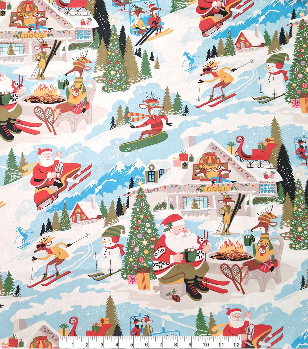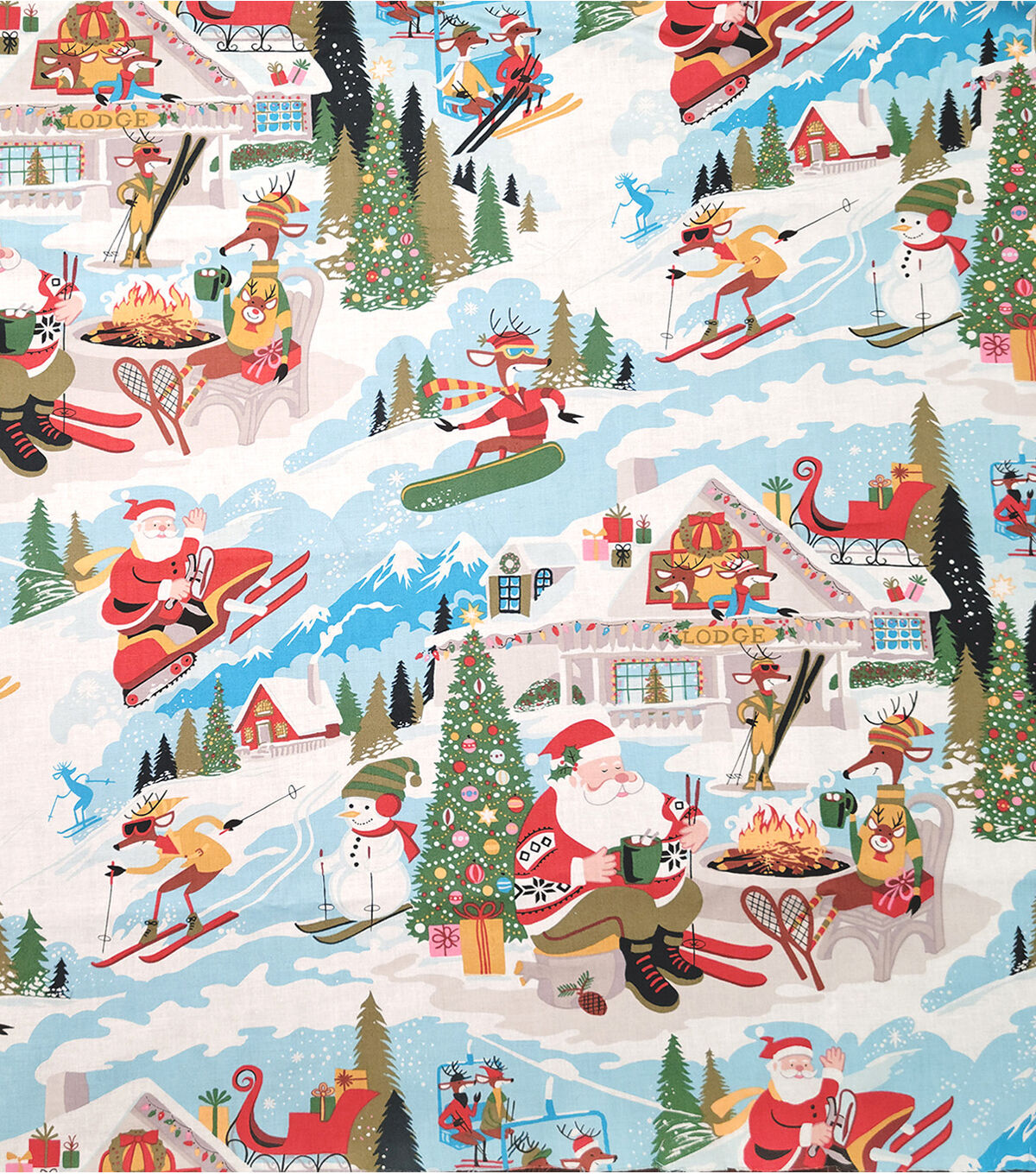 • Santa At Yuletide Lodge on Blue Christmas Cotton Fabric