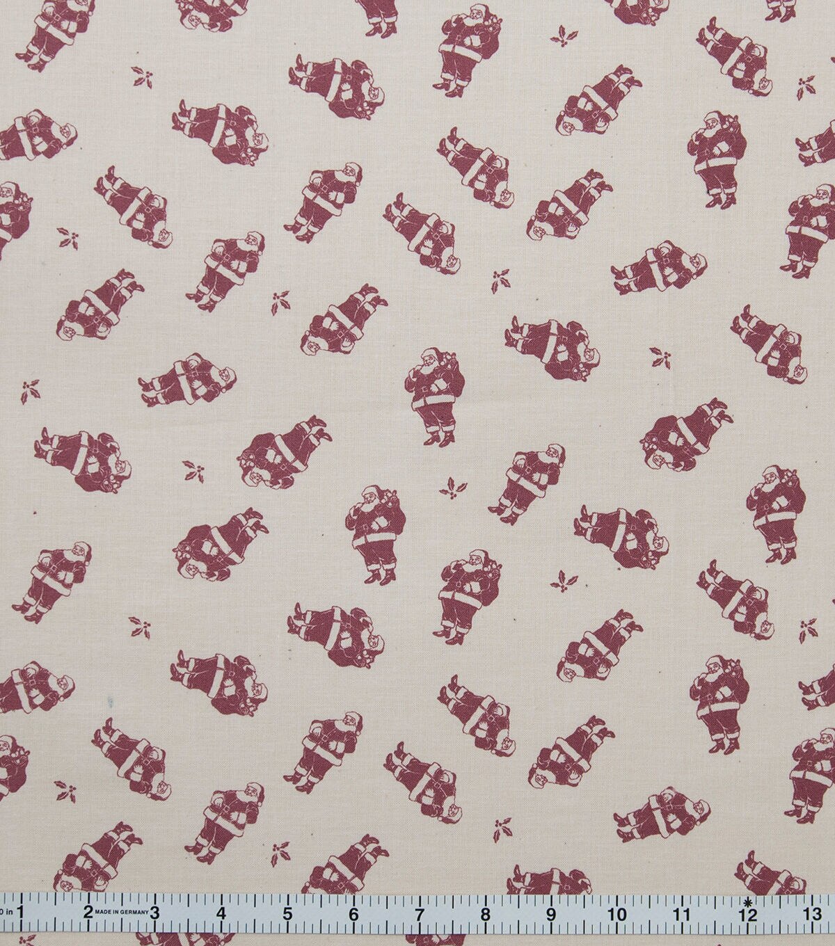 Santa & Leaves on Cream Christmas Cotton Fabric