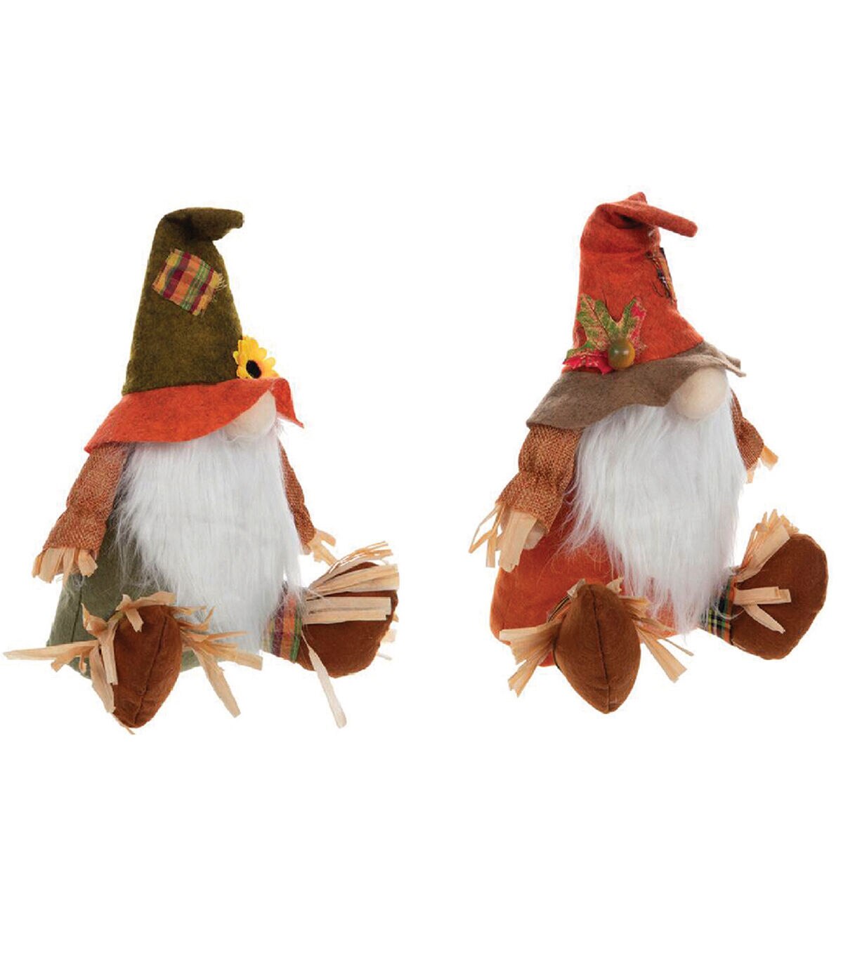 They might not do much to scare away birds, but these two scarecrow gnomes will attract a lot of compliments as they brighten up your holiday display! Soft and cuddly, these gnomes are comfortable cradled in your arms or sitting together on a mantle or windowsill. Beautifully handcrafted, this set of two 10" Scarecrow Gnomes is sure to provide many seasons of pleasure.