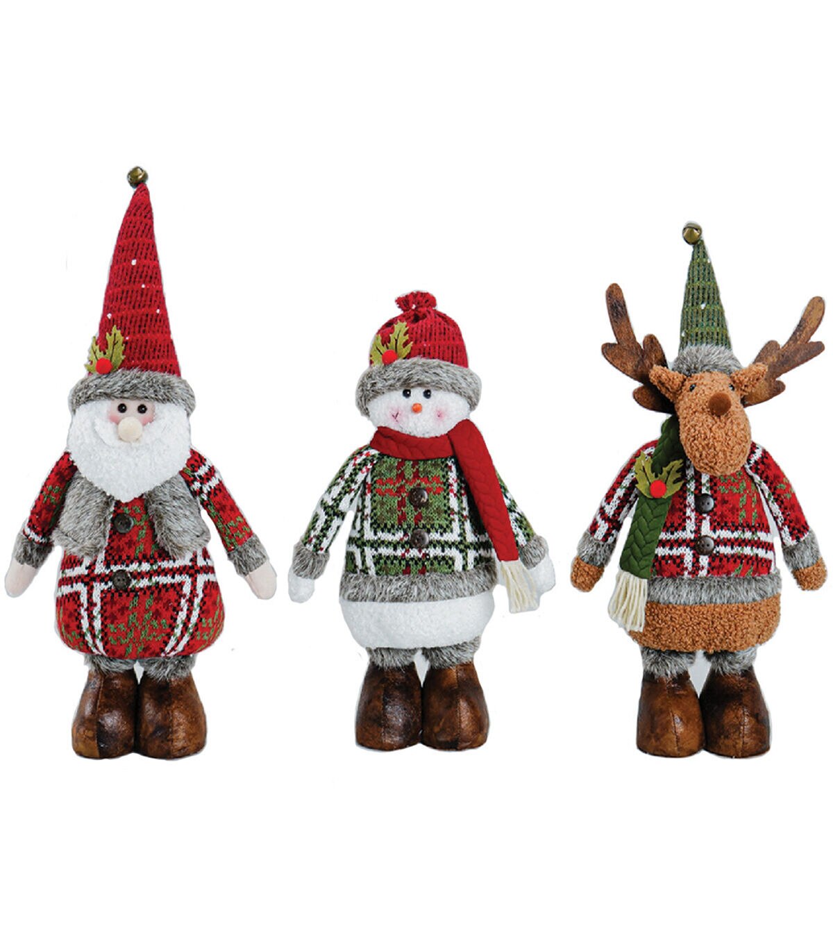 Decorate for the holidays with the perfect trio of Christmas characters: jolly Santa, frosty snowman and a flying reindeer. Super soft and cuddly, these plush buddies will stand securely and look great on any mantle or windowsill. Add some warmth and cheer to your holiday decorations with this adorable set of three 13" Xmas Time Santa soft plush.