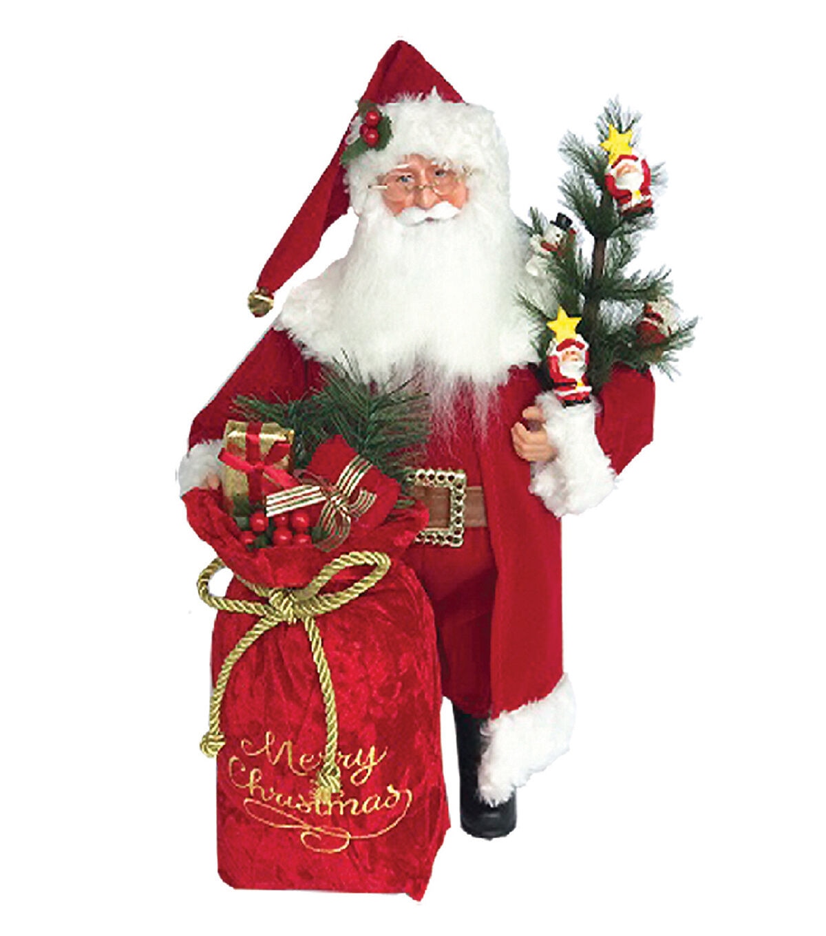 It's every child's dream as they drift off to sleep on Christmas Eve . . . waking up to see Santa Claus carrying an armload of presents to place under their Christmas tree. This Santa is wearing his traditional red coat and hat, and carries a small decorated tree in one arm and a giant bag of gifts in the other. Make your holidays the best ever with this wonderfully handcrafted and hand painted 15" Santa Delivery figurine.