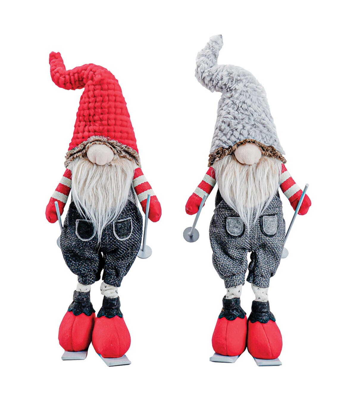 Gnomes love jewels and precious stones, but what they really can't live without is skiing on freshly fallen Christmas powder! These two gnomes are staying warm and looking stylish on the slopes in their denim-inspired coveralls and super soft, faux fur trimmed pointy hats. Colorful and cuddly, these gnomes will sit securely and look great on any mantle or windowsill. Add some warmth and cheer to your holiday decorations with this adorable set of two 24" Denim Gnomes.