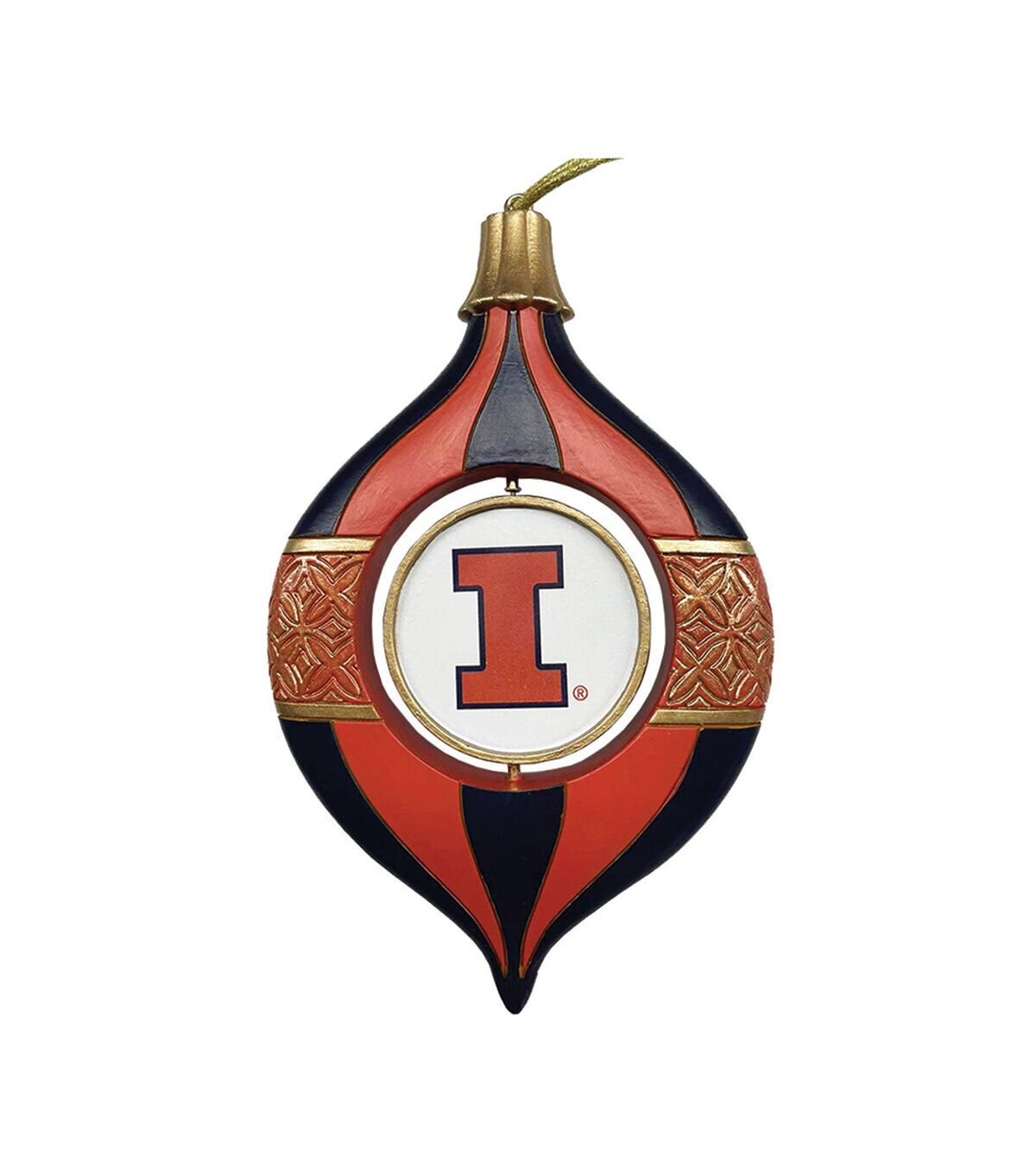 Show your team's logo and colors with this unique Spinning Bulb Ornament. These ornaments look great on a tree or hung anywhere. They also come in a plastic box to be stored year around. Make your sports season one to remember with this wonderfully handcrafted 5.5" Illinois Spinning Bulb Ornament.